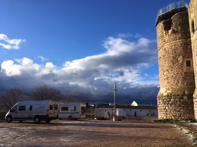 An hour later we’d arrived at the very small village of Castillo de Garcimuñoz, where there was an aire below the castle walls. This came with the facilities you’d expect, and we found it via Park4night, as it didn’t feature in our aires book.