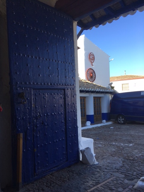 After coffee & biscuits at their’s late next morning, we headed off in search of a meal in Puerto Lapice, a little town with an apparently strong Don Quixote connection. We parked in the town’s aire, with the facilities you’d expect, and a short stroll took us into the town.