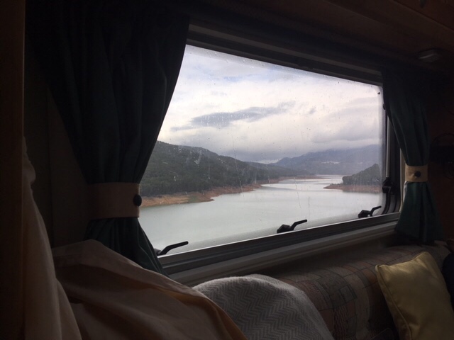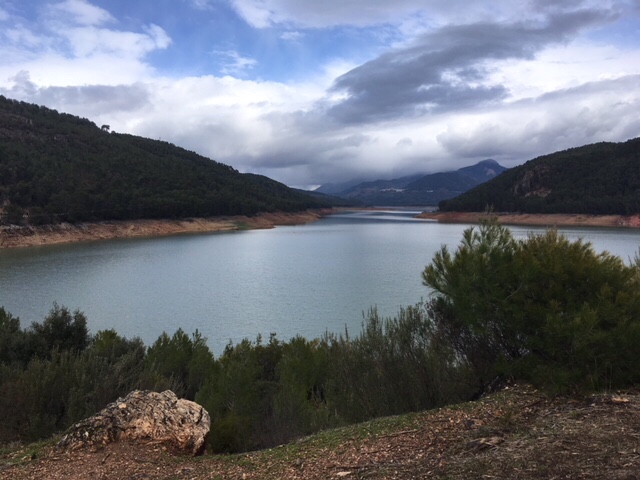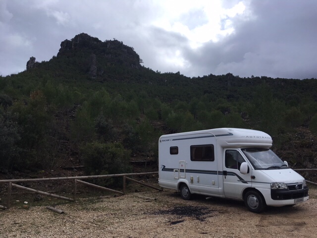 So we are delighted to be in a most spectacular spot (nearest picnic spot before El Tranco), with a good solid footing on a gravel parking area, as well as being comfortably above the water level. The sun came out in our honour and the photographer really enjoyed herself. Not long after, a heavy rain storm came over, but at the time of writing that has passed and the sun had returned.