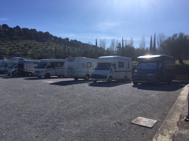 At the Park4night at La Guardia we were woken by a truck arriving and dispensing a number of ladies in fluorescent jackets. It was reminiscent of a marshal’s post for a sporting event, but then they started sweeping the side of the road just outside the carpark. When they started mixing the paint we then caught on that they were refreshing the white hazard stripes there. They didn’t seem concerned about us & they weren’t doing anything round the entrance, so all was well.