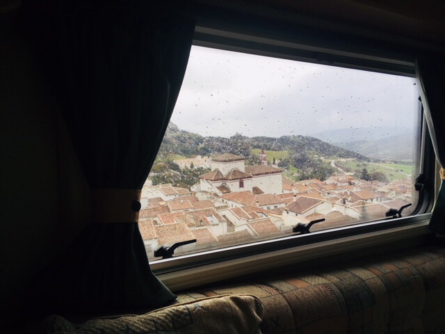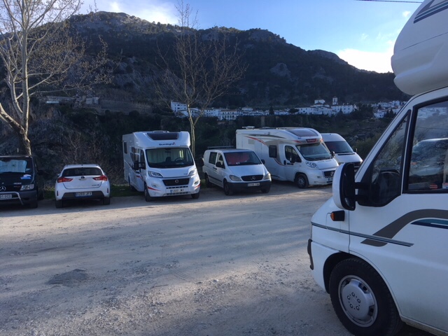 As we approached my proposed Park4night along the valley, I could see that the carpark at Grazalema was pretty full, so not really our cup of tea. We parked up, but I’m not sure if it was the uneven surface, the family next to us with the whistling father, the caravan in the corner with a very loud generator, or the fact that our heads were just a few feet away from rumble strips on the road we were next to, but the writing was on the wall that we’d soon be looking for alternative accommodation.