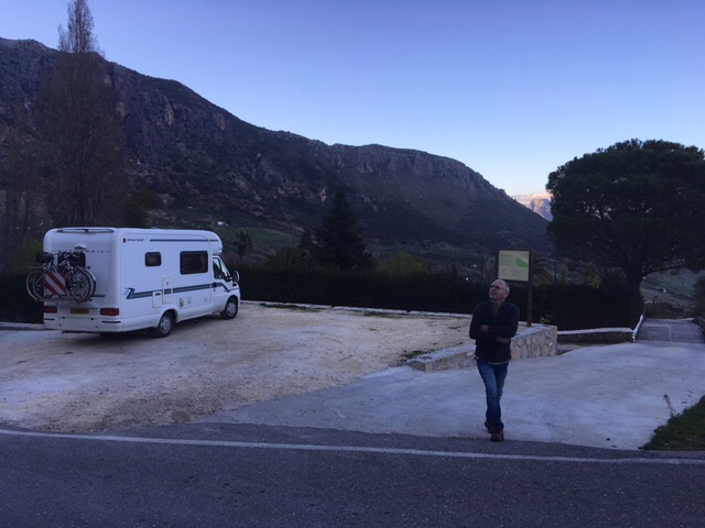 As it happened, there was a “surrounded by nature” Park4night about 2.5k away, just around the corner, so we upped and went. Another very narrow road, but it was still light and not far. In fact, en route, Sophie noticed a small square carpark, which served a local fountain and accommodated a few cars. Being empty, it was ideal for us, level hard standing and a lovely view across to other mountains. So we were able to put our heads down at another successful free-camp.