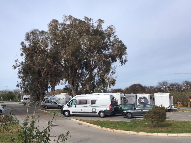 So we now find ourselves at the aire at Rota. I expected it to be busy, and wasn’t disappointed, but fortunately there’s an alternative motorhoming spot in the next carpark, which, whilst busy, is not as “squeezy” as the official aire.