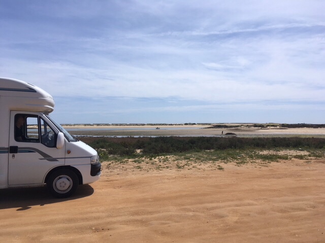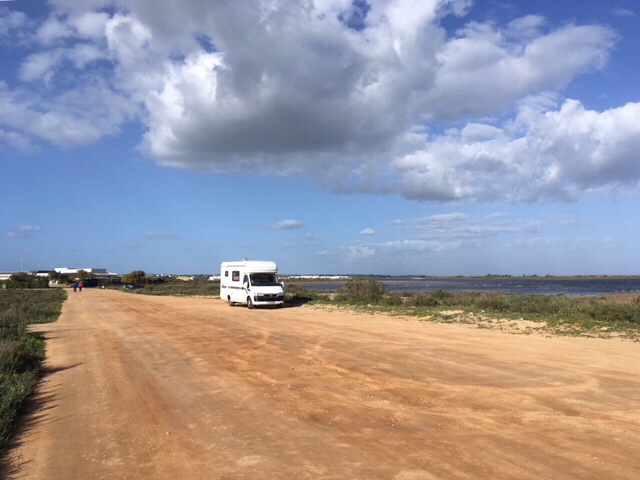 My objective for the night was Tavira’s coastal area, and we were not disappointed. The Park4Night was situated along a narrow spit of land, with marsh on one side and the sea on the other. Good hard standing and amazing views. There were other neighbours there too, but none in our faces and all was perfectly peaceful. Even in the middle of the night, when awakening momentarily, all you could hear was the gentle lapping of the sea, the seabirds, and the occasional engines of passing small fishing boats – very relaxing indeed.