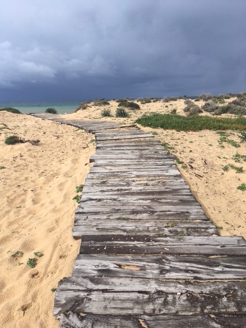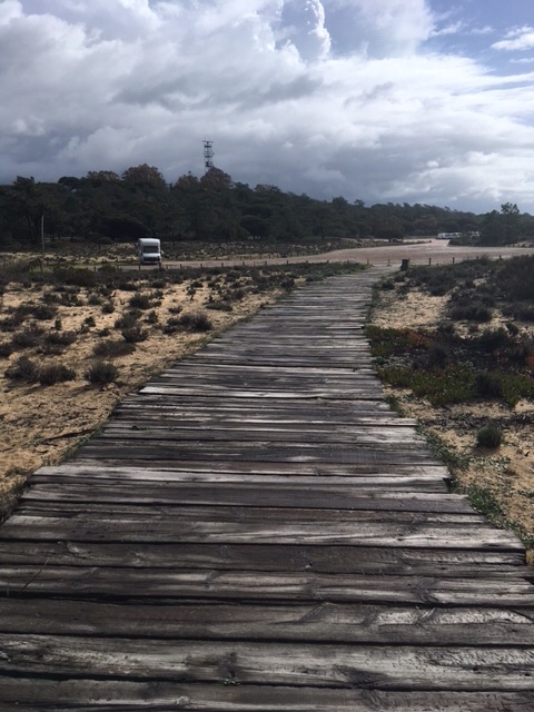 Although only 5k West of our previous night’s stop, as the crow flys, Praia do Ancão was in reality at least a 25k journey. Even with the best of intentions, you’re always ultimately at the mercy of the SatNav lady, and the inevitable very narrow lanes you don’t see coming. We normally survive these momentary trips down inappropriate roads, that often seem to go on forever. We did succeed in getting through this episode, but unlike our normal experience of meeting very few, or often, no other vehicles, this time it was if we’d hit a mass exodus from one of the local villages, as we met a constant stream of cars.