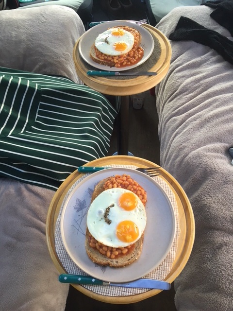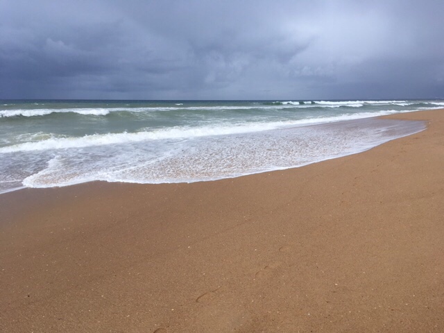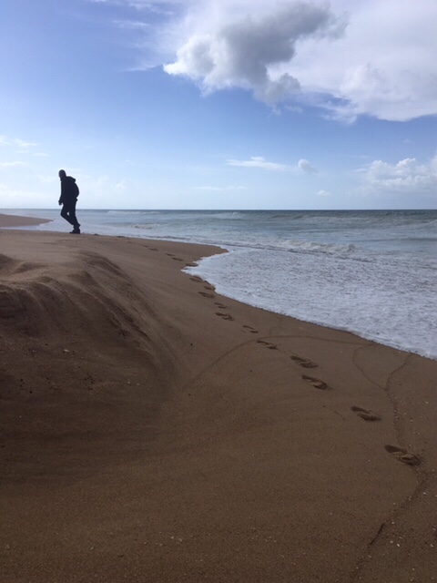 Fortunately we made it to some sensible roads again into an area full of very smart golfing complexes. We ultimately made it down to the beach this idiot was aiming for and the place was deserted. Now this Park4night spot (3.5 tonne limit) comes highly rated, with advice that it is mobbed in the Summer, so I expected at least a few neighbours, but it wasn’t to be and so we had the luxury of this super hard-standing carpark to ourselves, and between the showers, had the pounding Atlantic waves to lull us to sleep.