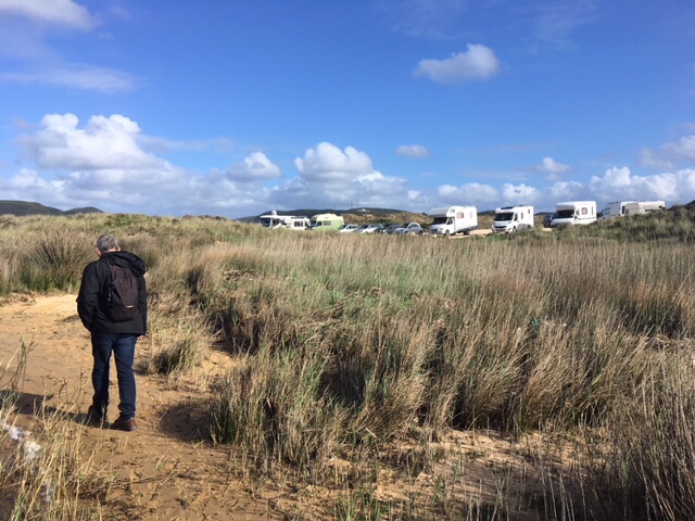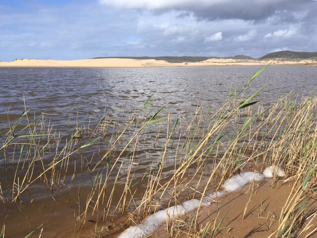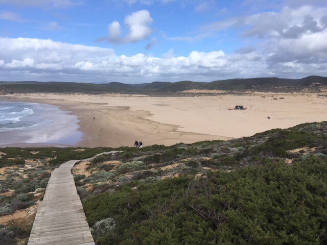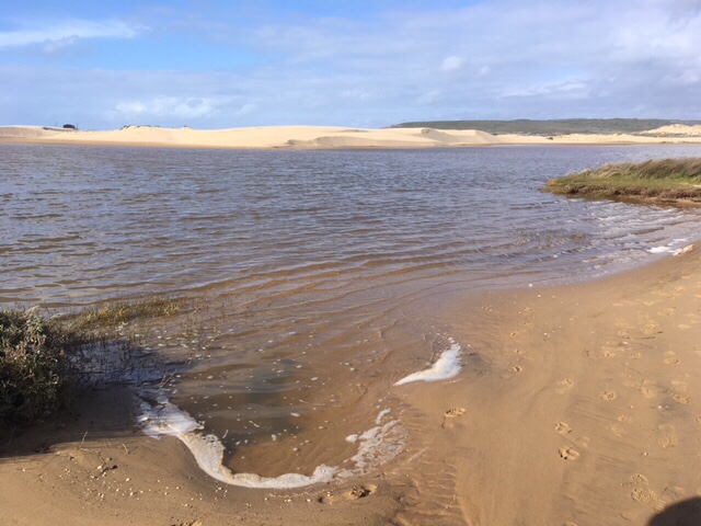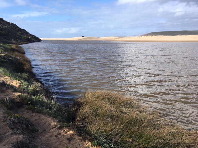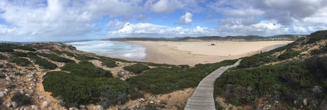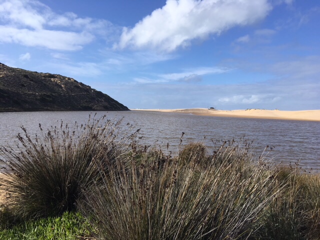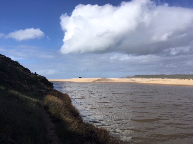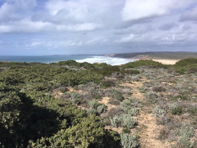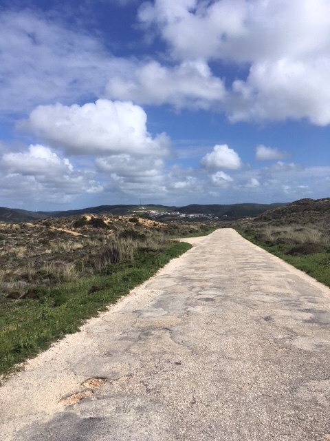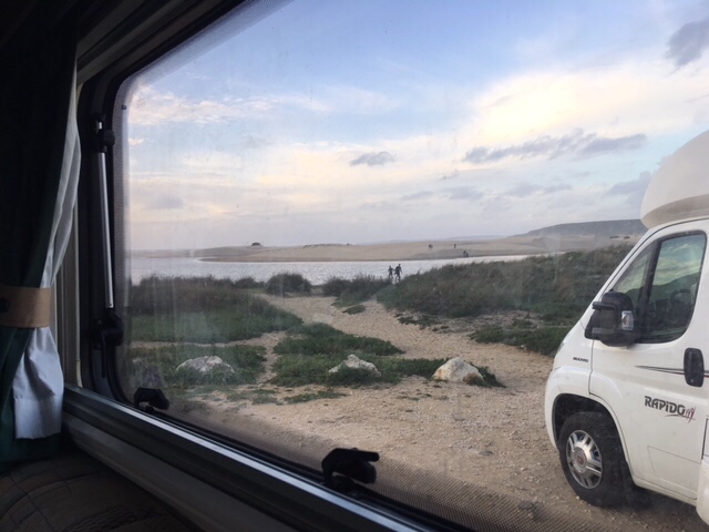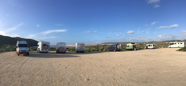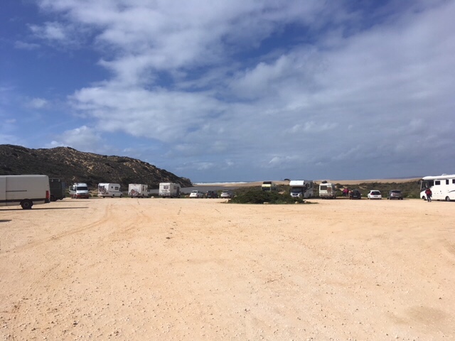 After a Lidl top-up we began to enjoy the simple roads and countryside of this wonderfully underdeveloped part of the country. Very soon we were at my chosen Park4night at the Praia da Bordeira at Carrapateira (Estrada da Praia). The reviews looked great and the place surpasses those reviews. We parked overlooking the lagoon, with miniature Sahara-like dunes on the beach beyond, and the massive restless surf beyond.