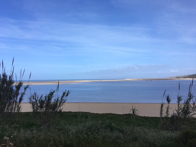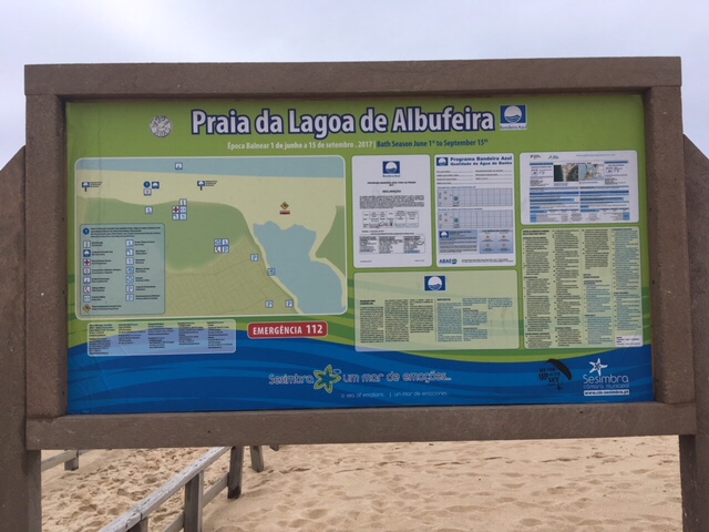 Our first stop for the day was Lagoa de Albufeira. Really good parking here, and hardly anyone around on this Sunday afternoon. Another stunning beach with relentless surf, separated by a sand bar from a fresh water lake.