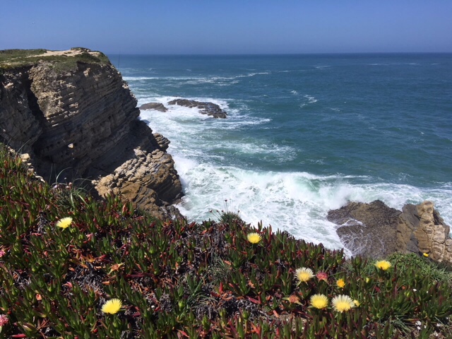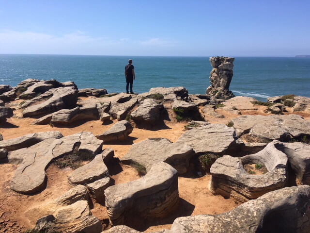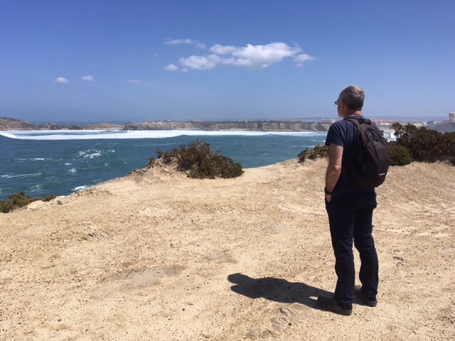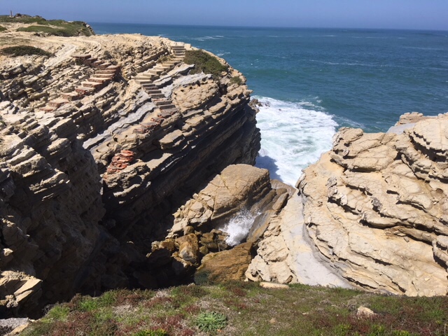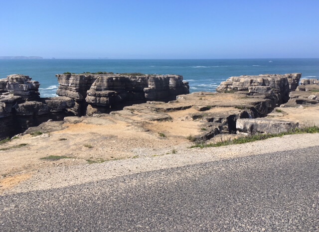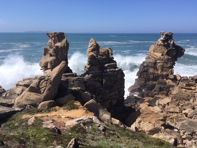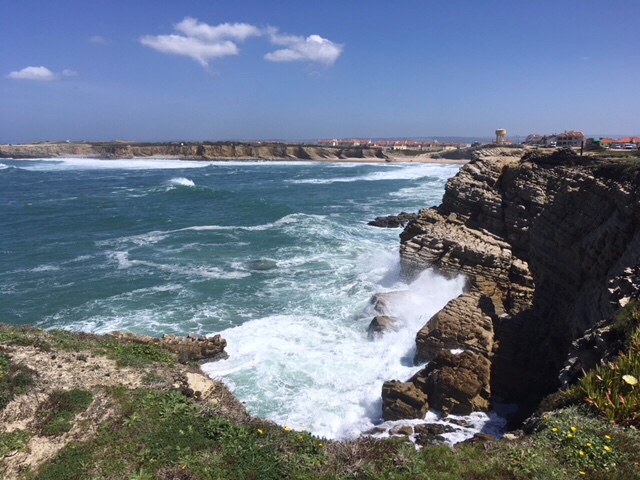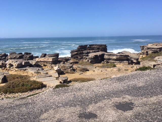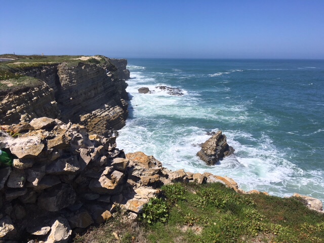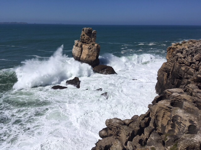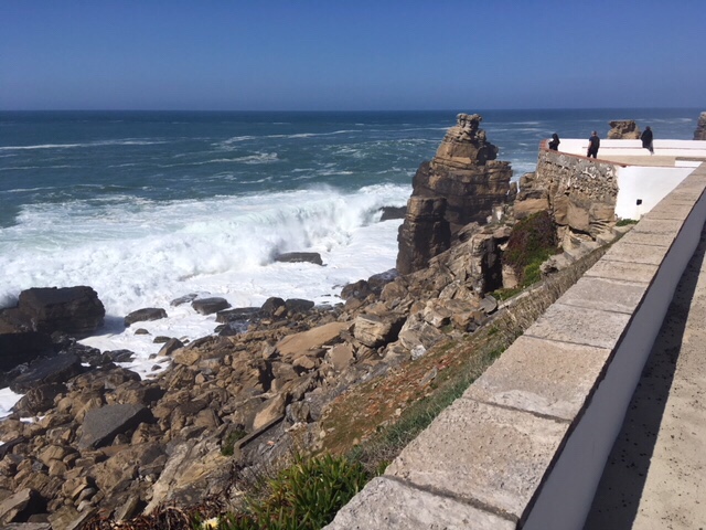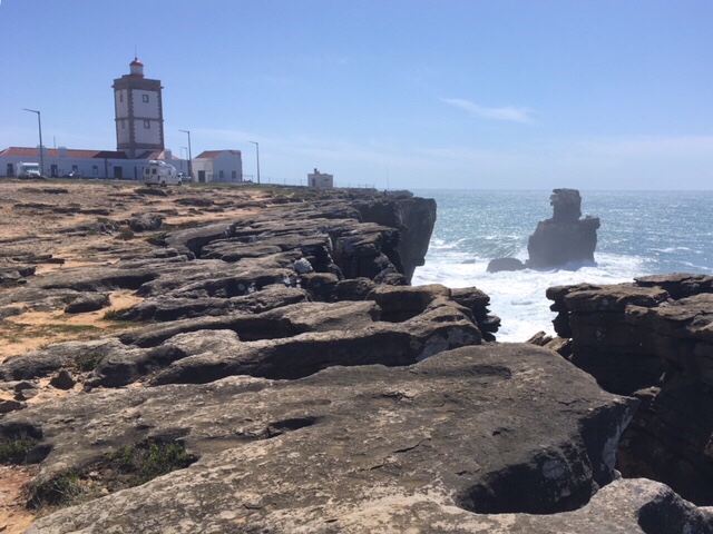 As we drove round the Peniche peninsular, heading for the lighthouse, what we hadn’t been prepared for were the amazing cliff formations and remarkably massive waves that consistently sent spray above the cliffs, which were a long way up. We made several stops along the way to walk along and watch the huge breakers. One section also contained fossils everywhere, which is something we don’t see from where we come from, so that was really interesting.