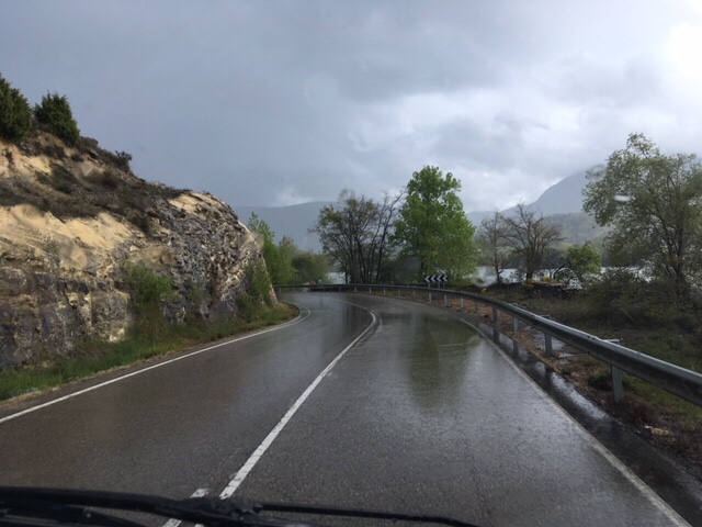 Heavy rain threatened throughout the visit, but fortunately the heavens only opened once we’d made it back to the van. From here on I wasn’t too sure what the roads would be like. On my map, red means a big road, yellow means a sensible road, and with white you take your chances. Anyway, the white roads that took us East through the mountains were excellent, and no problem at all.