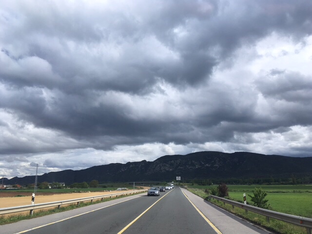 With ominous dark clouds and rain, and possibly thunderstorms forecast, we began today’s adventure. We had a practical stop at Brieviesca to firstly top-up with some water at their incomplete aire. The lack of a tap head there was overcome by a pair of pliers, as the rain came down round my ears. Next, having used a new Spanish-specific app called GasAll, that has live fuel prices, I found a garage in the town with bargain diesel.