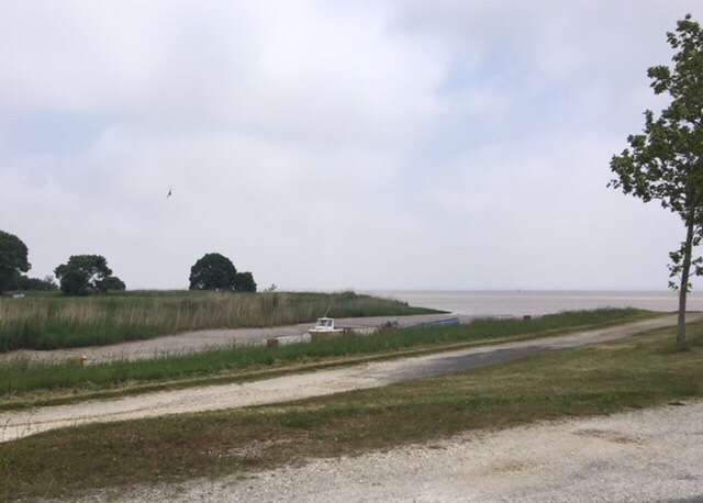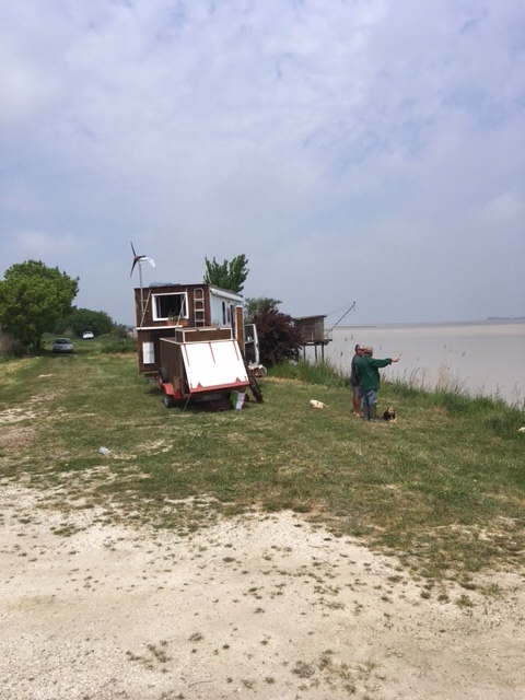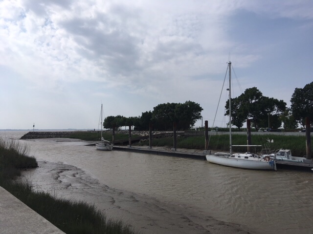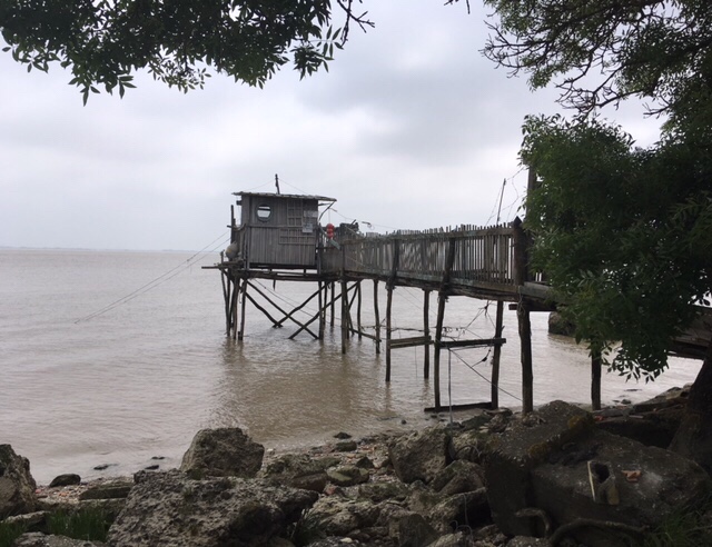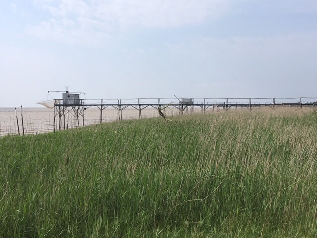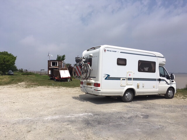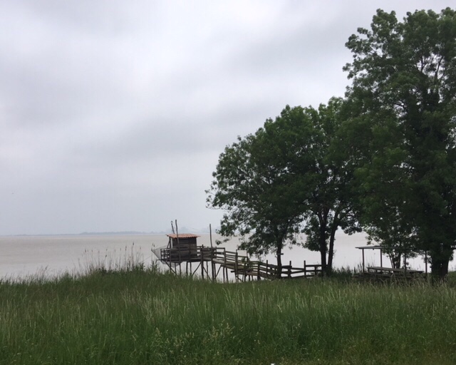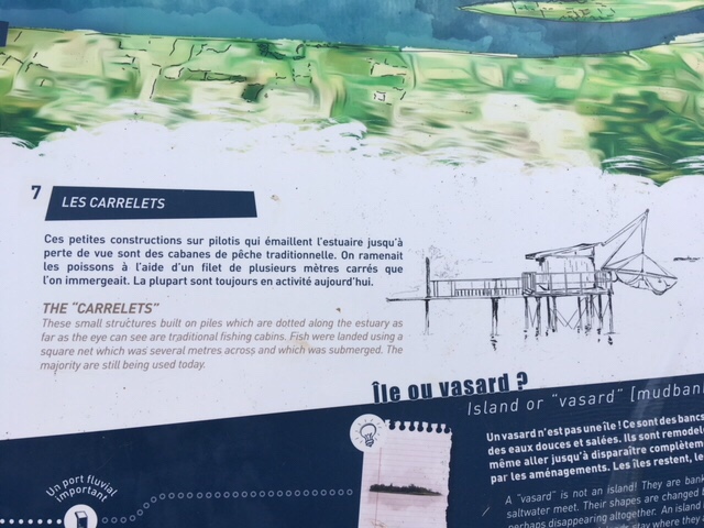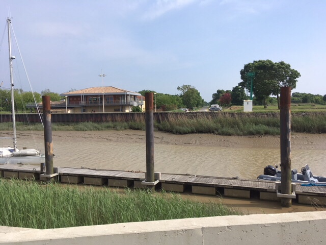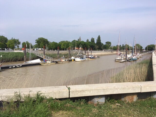 Our chosen overnighting place was at Port des Callonges (Braud-et-Saint-Louis), on the banks of the Gironde, at a small port. A popular place for tourists as it has a bird-watching area. Quite a few cars here, given it’s a public holiday, and a handful of motorhomes. We’ve actually chosen a parking area just around the corner from what the photographs imply, but we’re at the point that the coordinates took us to. We’re completely on our own, on hard standing, with the river behind us, and it’s very nice indeed.