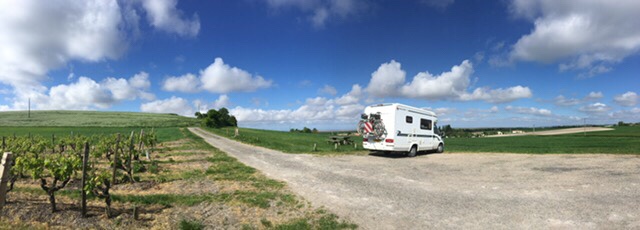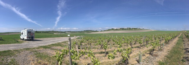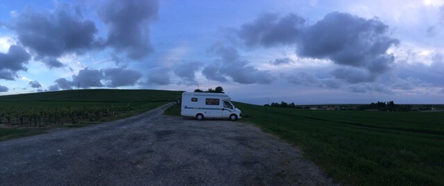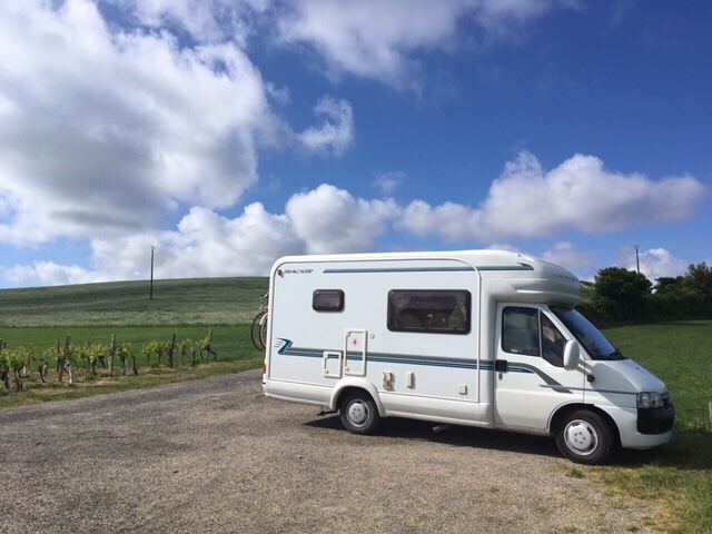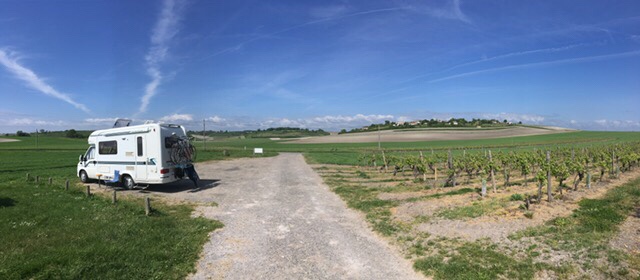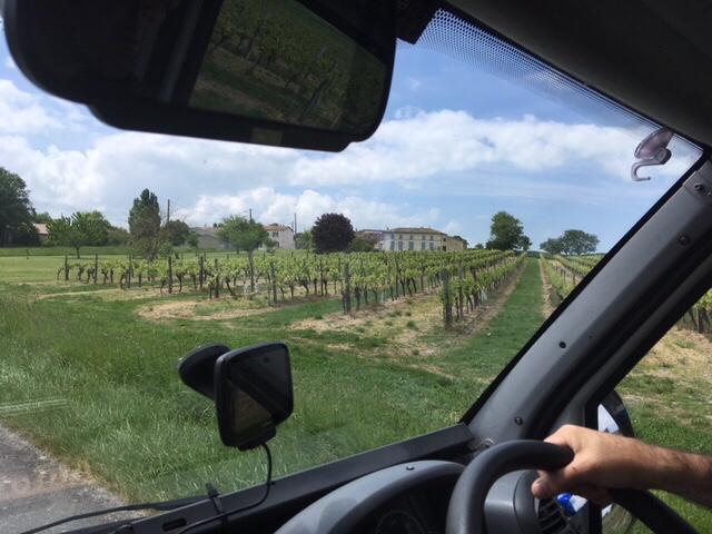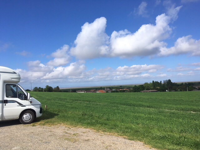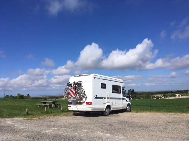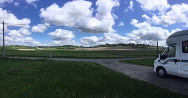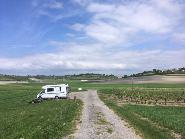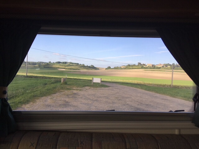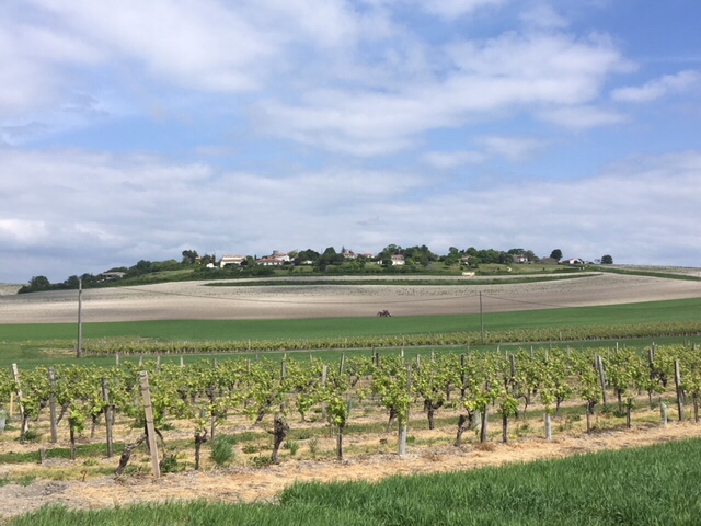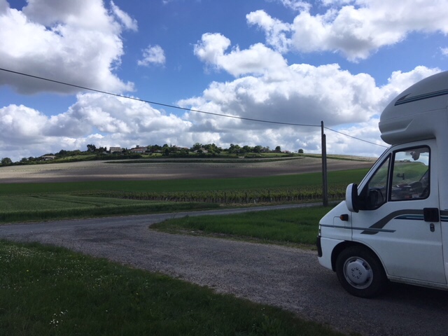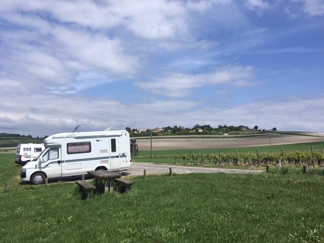 When we arrived at the picnic spot in the La Tour de Beaumont vineyard, and saw the 360 degree views of the Gironde, with the South bank in the distance, fields, vineyards, and rolling hills, we knew this had to be our next stop for the night.