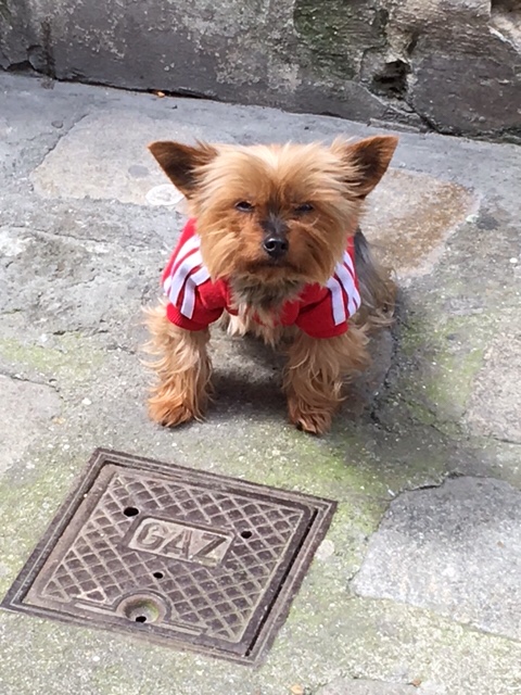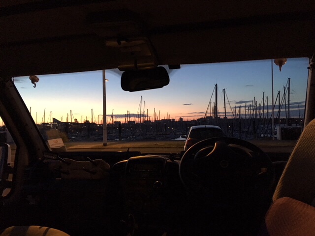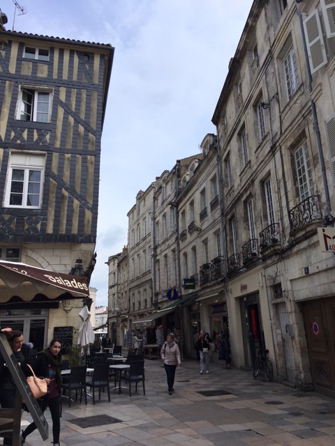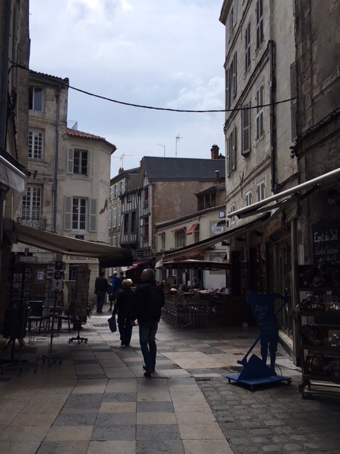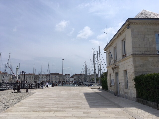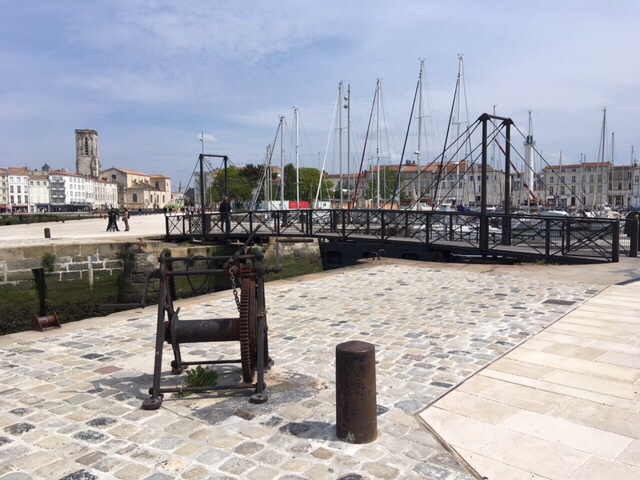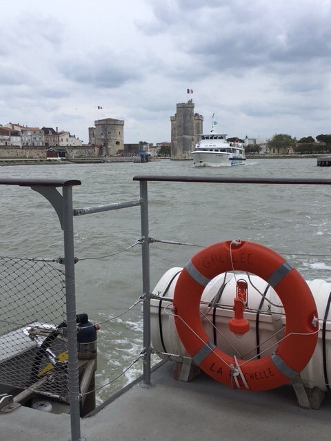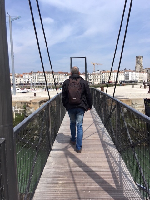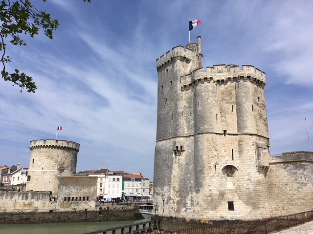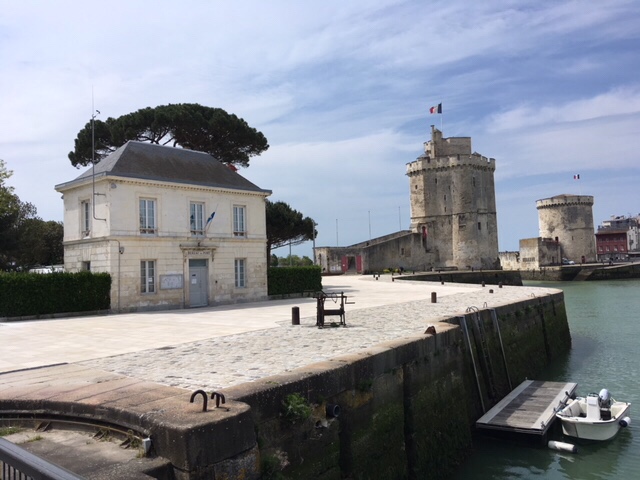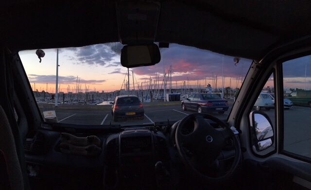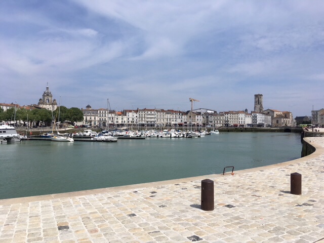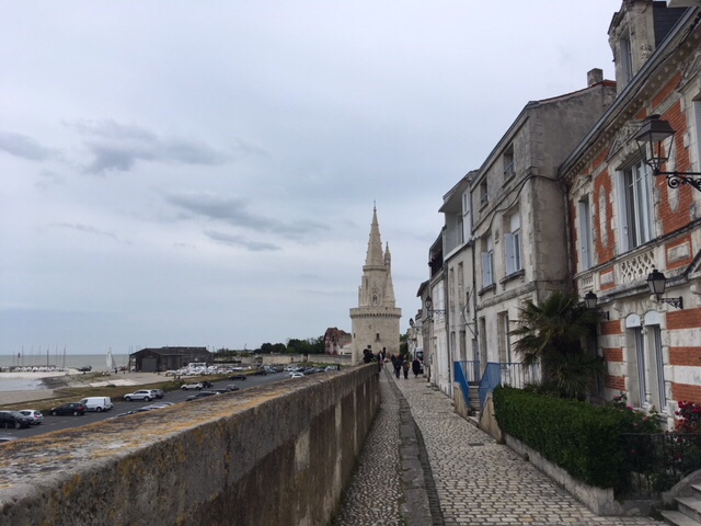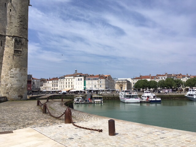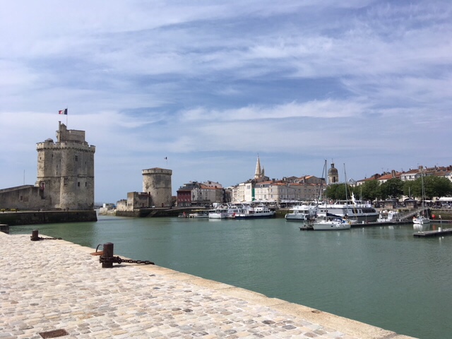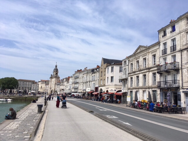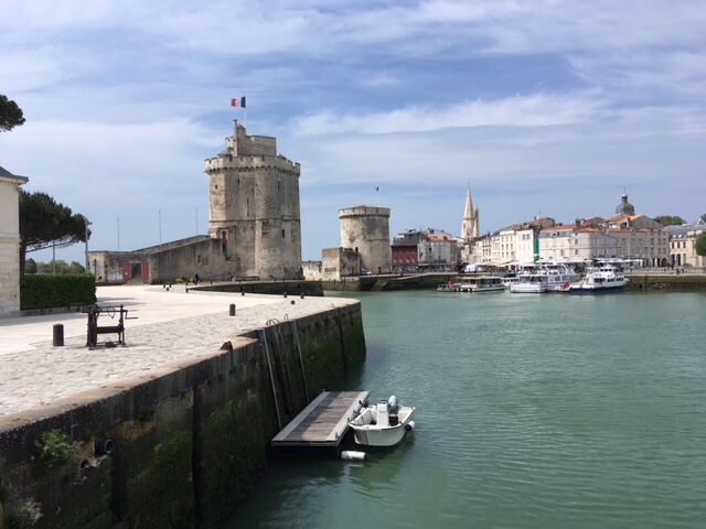 After dinner on board, I fancied a stroll, but Sophie was a bit tired, plus still nursing a bruised little toe, so I thought I’d wander into La Rochelle. It was a lovely evening, although the wind was cold, but it’s a straightforward and interesting 30 minute walk along the large marina, then by the sea as you approach the iconic towers, where the harbour to La Rochelle’s old town is. I had a nose round the town, doing a bit of research into restaurants for lunch the next day. By the time I’d returned, Sophie’d got talking to a Scottish lady in the next van along, who was taking a year out to travel through Europe, with her three dogs.