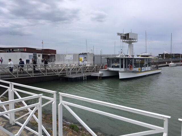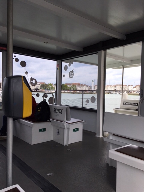 By the next day, Sophie was up for a walk into town, but only on the proviso that we caught the sea bus back. So we walked in, enjoyed a lunch outside, took a stroll round the backstreets, then caught the hydrogen-powered “bus de la mer” by the main tower, which for €3 each took us back to the marina, just below where we were parked.
