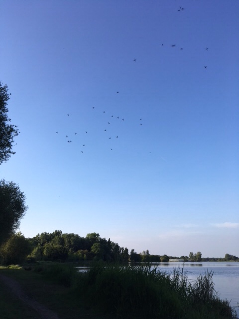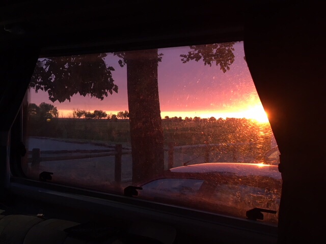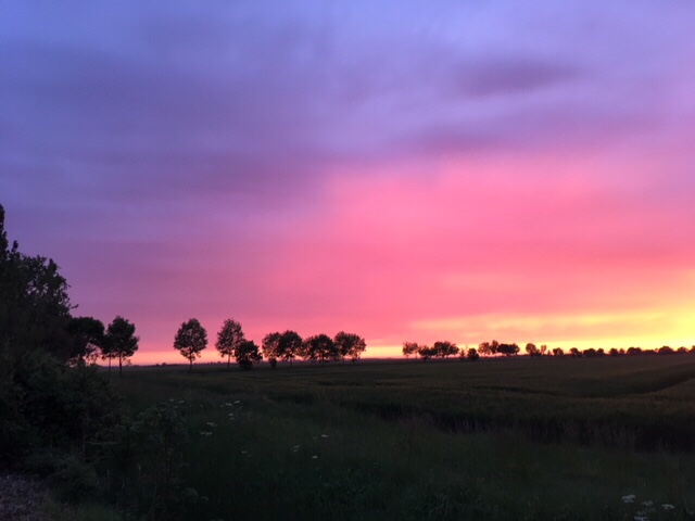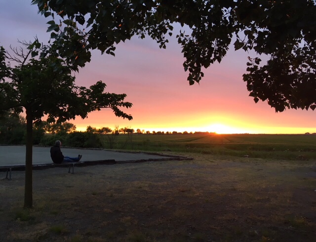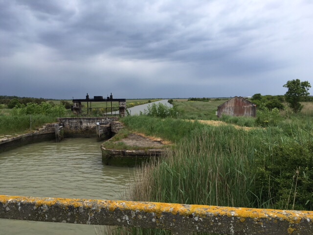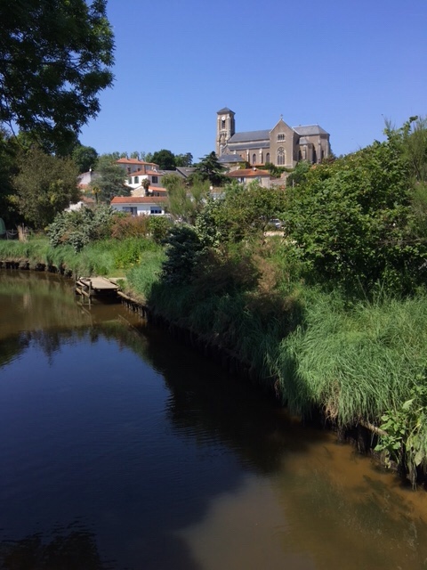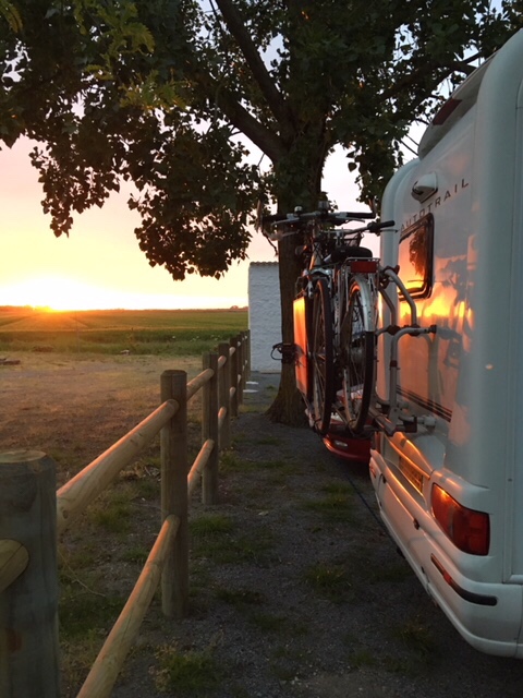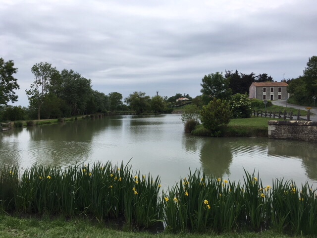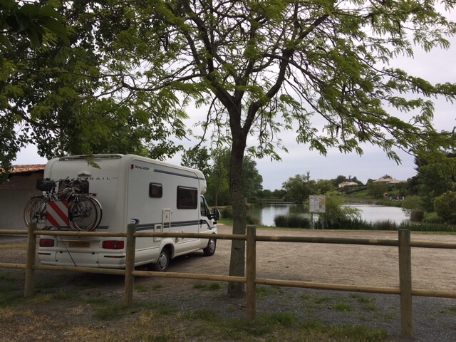 Our stop for the night was by a small étang/lake in the small village of St Michel en l’Herm. It was a popular spot for dog walkers and fishermen, but we had the place to ourselves overnight, after enjoying a spectacular sunset.