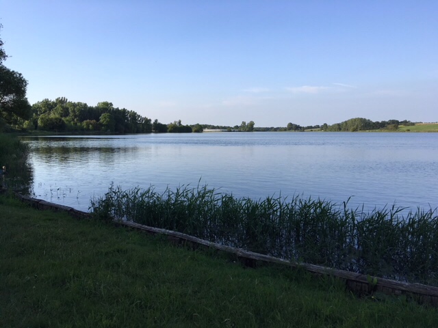 Final stop for the day has turned out to be by the Lac d’Apremont just beyond the town of Maché. Fishing is clearly popular here, and we have a very attractive position overlooking this lovely lake.
