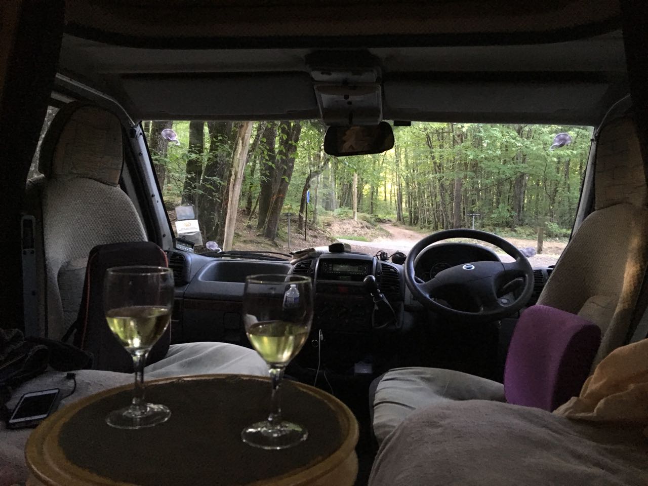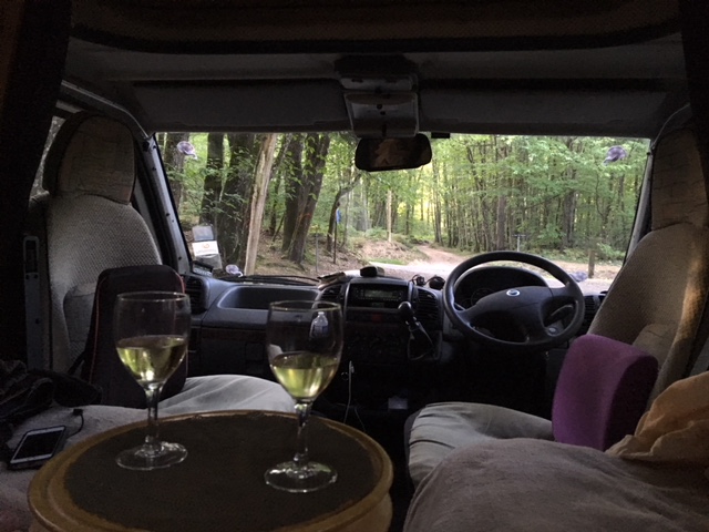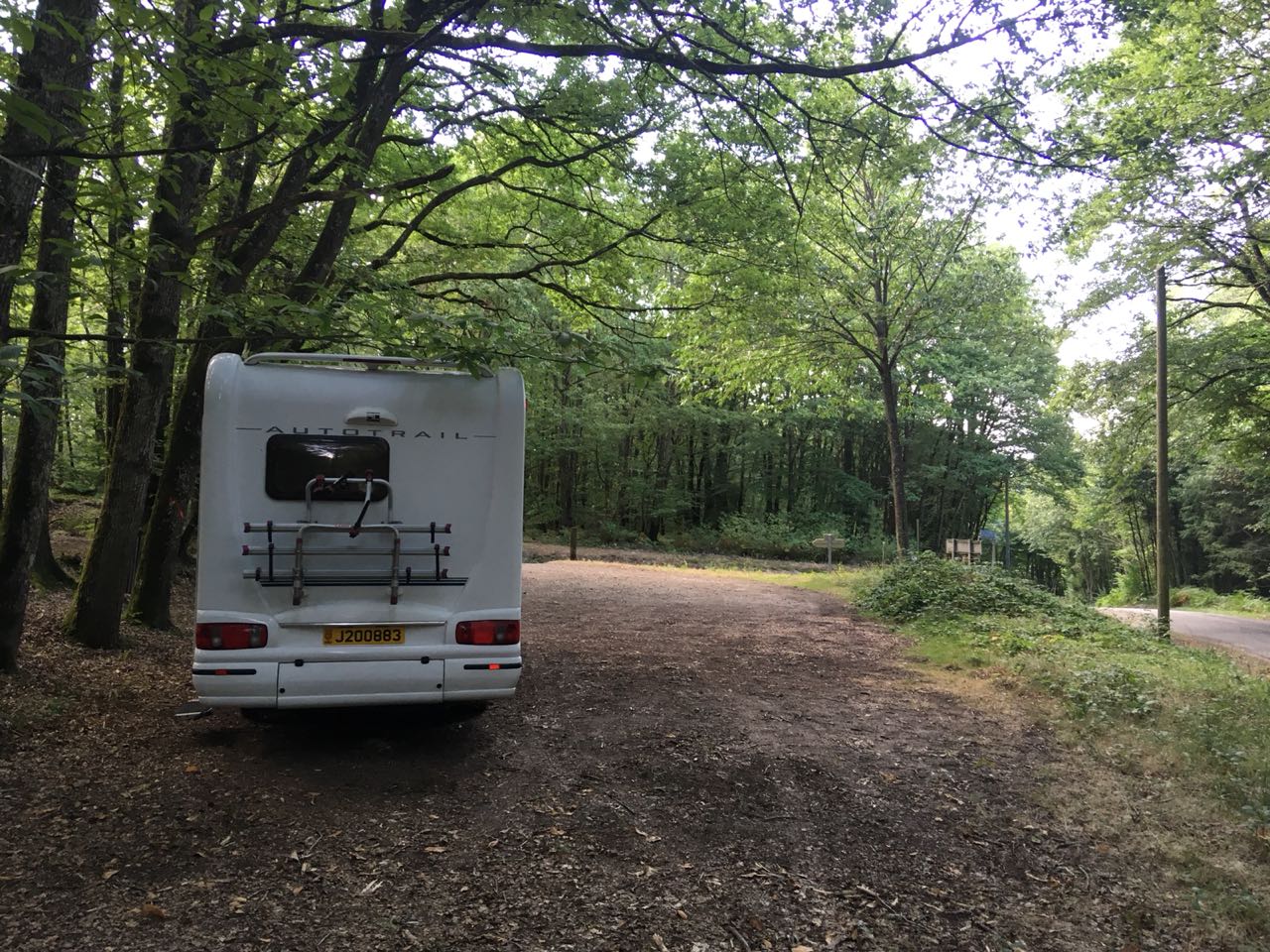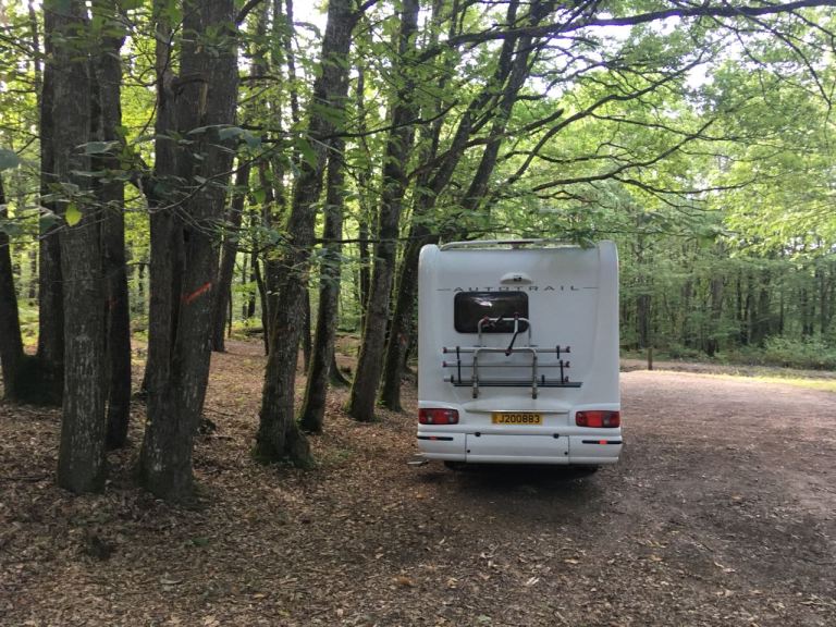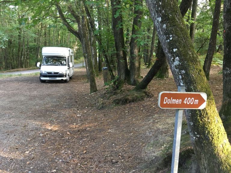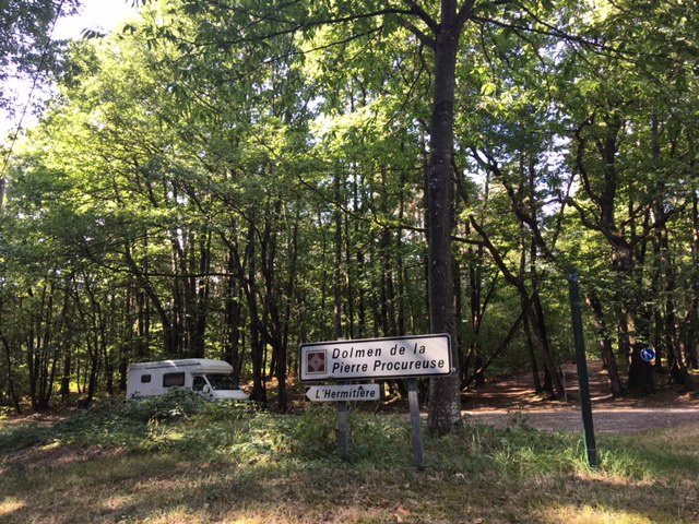 Anyway, Gamages proved to be an excellent night stop. Using our trusty Park4night app, we found a small country carpark that served a dolmen in a forest, our ideal sort of overnighting place, ie away from civilisation, in the country, very quiet, and no neighbours. Sophie may not have slept very well that first night, but it was a great venue, and I’ll put her difficulty in sleeping down to being so excited to be on a new trip, and being somewhat overwrought from being up so early and all those hours travelling.