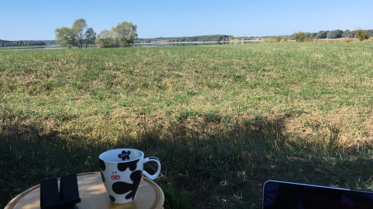 I was heading towards another lake, this time the enormous Lac du Der-Chantecoq. There were a number of possible stops, but I was keeping the super-busy ones as a very extreme last resort. Anyway, given the continued exteme heat, we found a great place beneath some tall trees, just a stone’s throw from the lake, and only a handful of quiet neighbours.