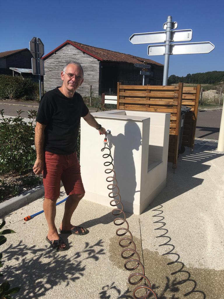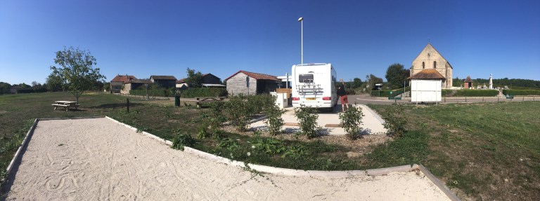 Our first stop was at a brand new tiny village aire, and had it been the right time of day we’d have stopped, given the lovely views and peaceful location. All the services were free and modern and so we took advantage of those and left.
