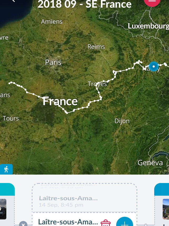 After an abortive visit to a zipwire venue in a forest, only looking for the perfect overnight opportunity I should add, we then deliberately avoided the large town of Nancy, and found a great spot, courtesy of Park4night, just outside a quiet village called Laître-sous-Amance.