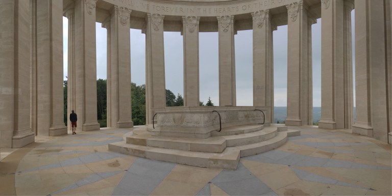 Our first stop today was at the impressive American memorial at Montsec. Built to commemorate some of the latter, more desisive battles of WW1, where the US were involved. Ironically, it was badly damaged in WWII, by the Americans themselves, after the Germans had dug in on the hill where the monument stands. The Americans, as you’d expect, made good the repairs.