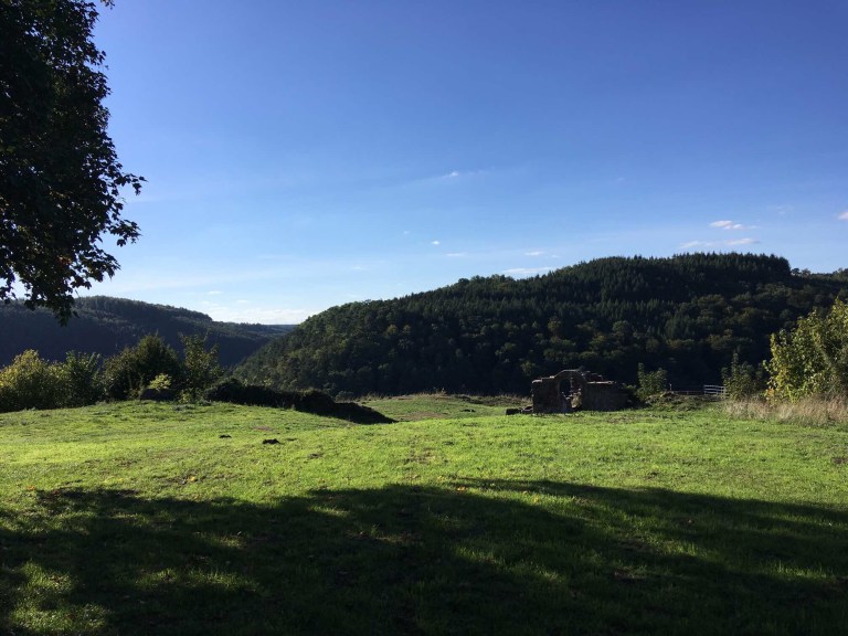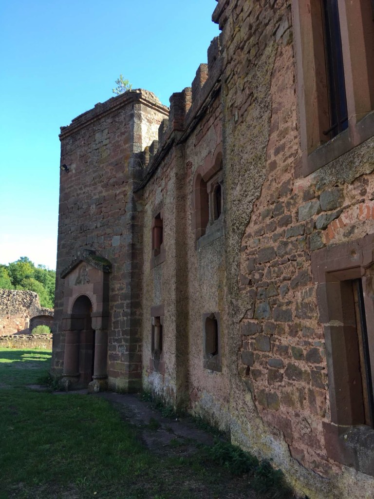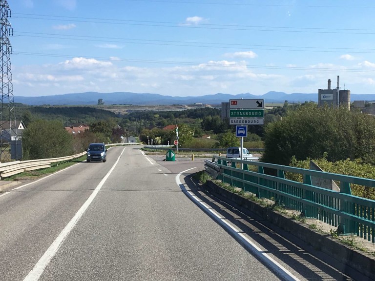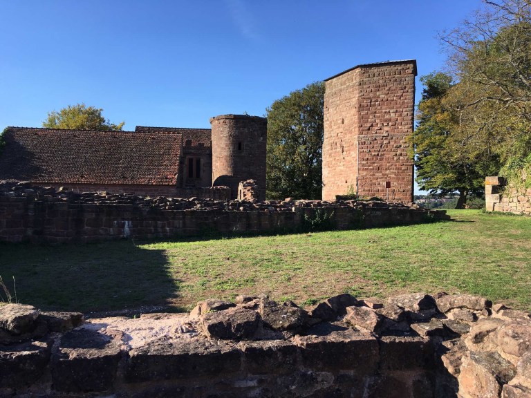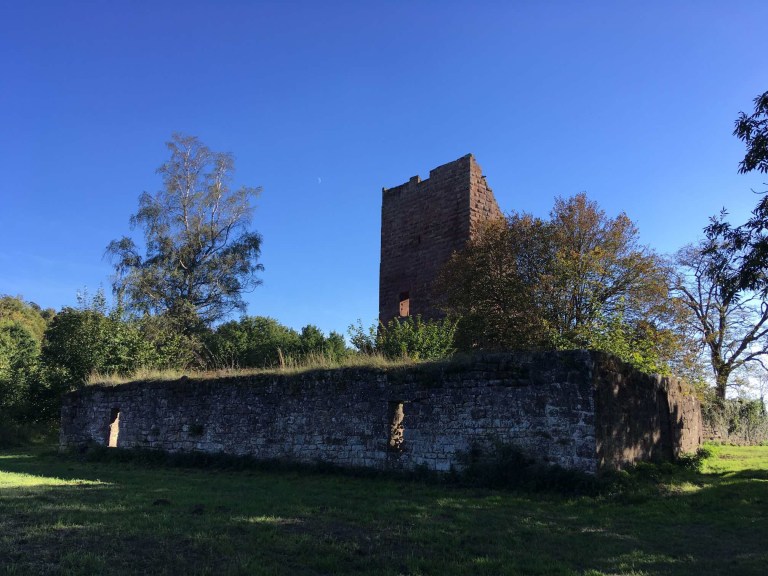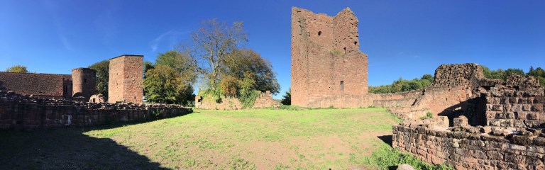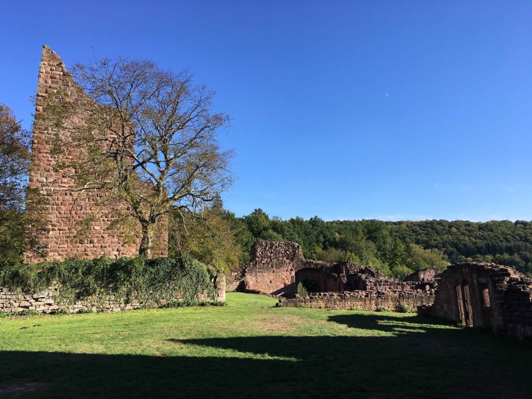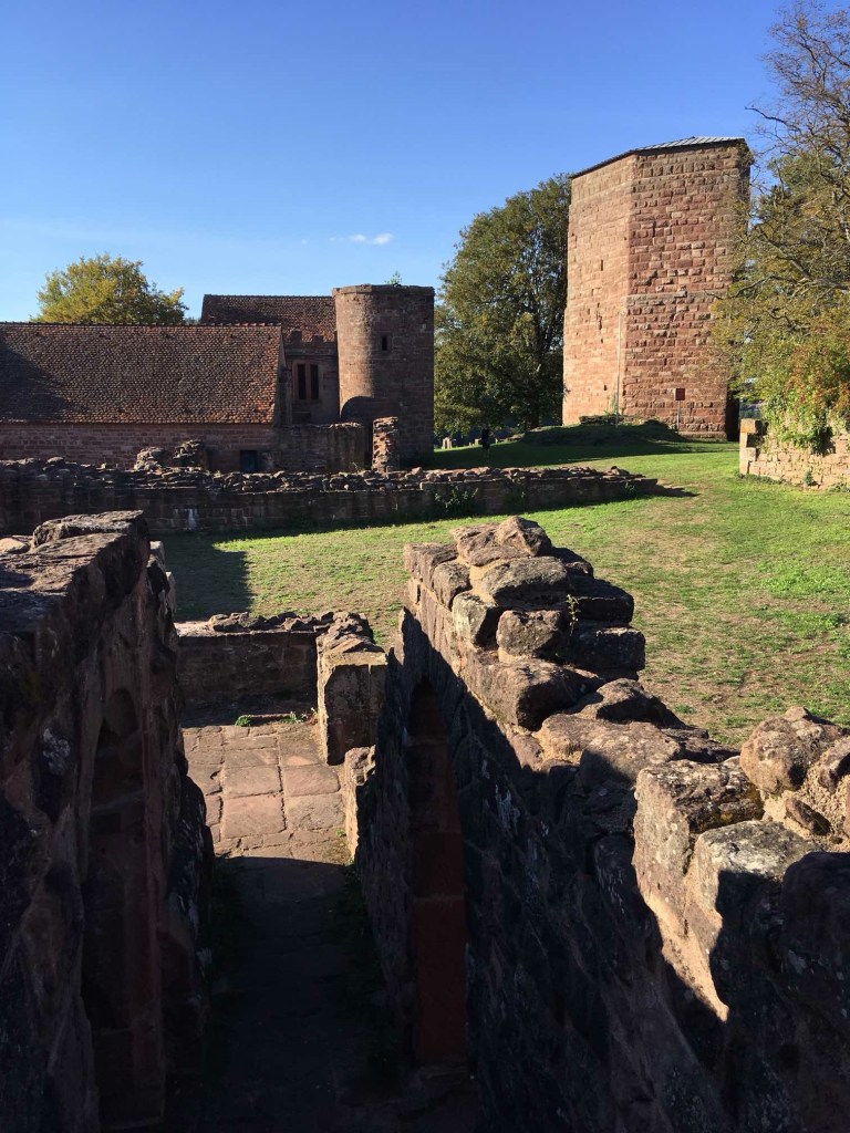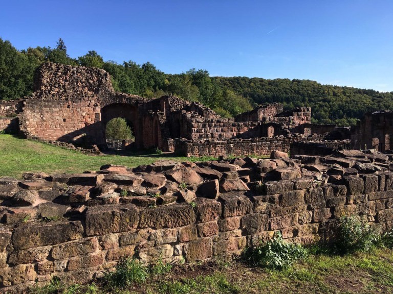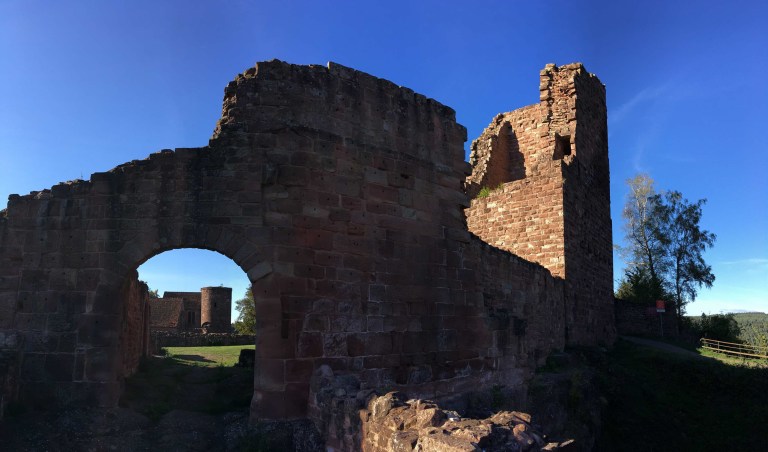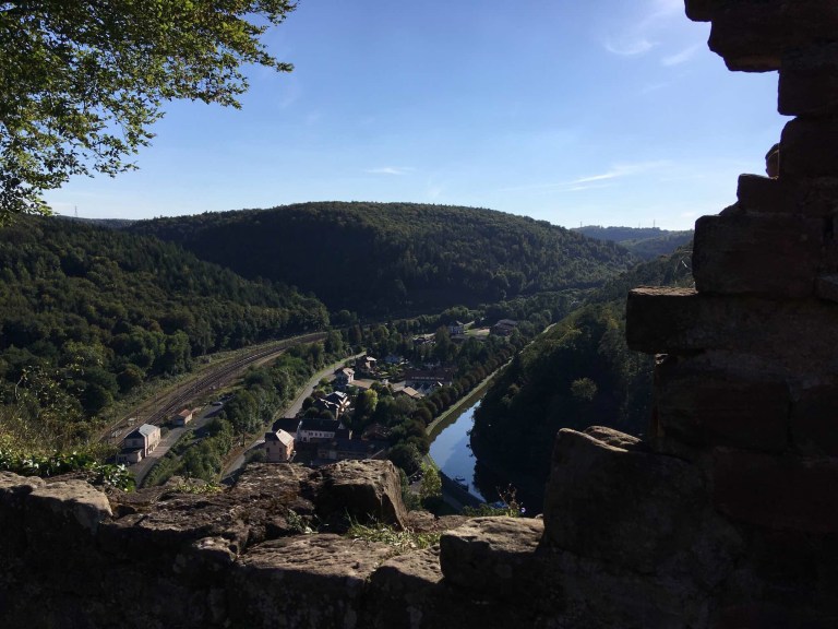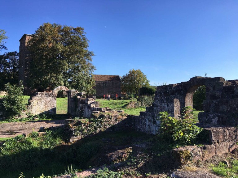 Then we came across the town of Lutzelbourg, above which there loomed some castle ruins. Sophie suggested that we might find we could overnight up there. Whilst this is not in her job description, a Park4night spot did actually appear on my SatNav, so we thought we’d better check it out. The approach road looked a bit tight, so we walked it first to see. Comfortable that we could drive up it and that there was sufficient space to park on the flat, I left Sophie snapping away with her phone, whilst I went and fetched the van. It was a stunning spot, with great views from the castle, and we looked forward to another peaceful night.