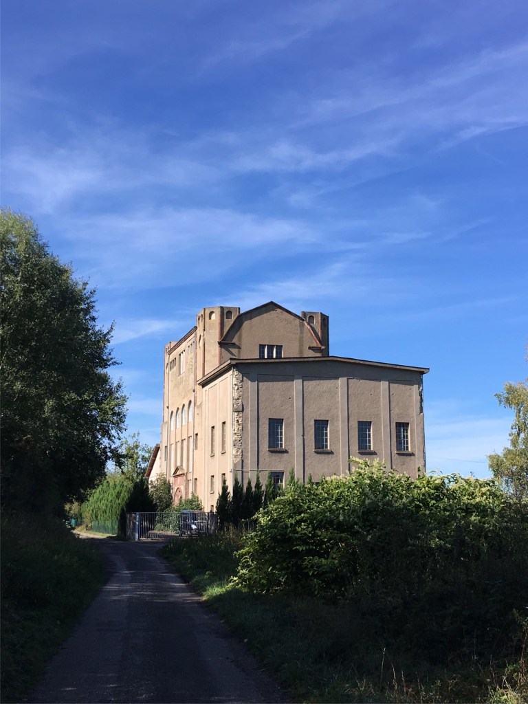 En route, seeing a large imposing building off to the left caused us to investigate further. After a stroll up a lane we came across what had originally been an old electric power plant, but had now been turned into a habitation.