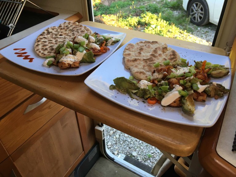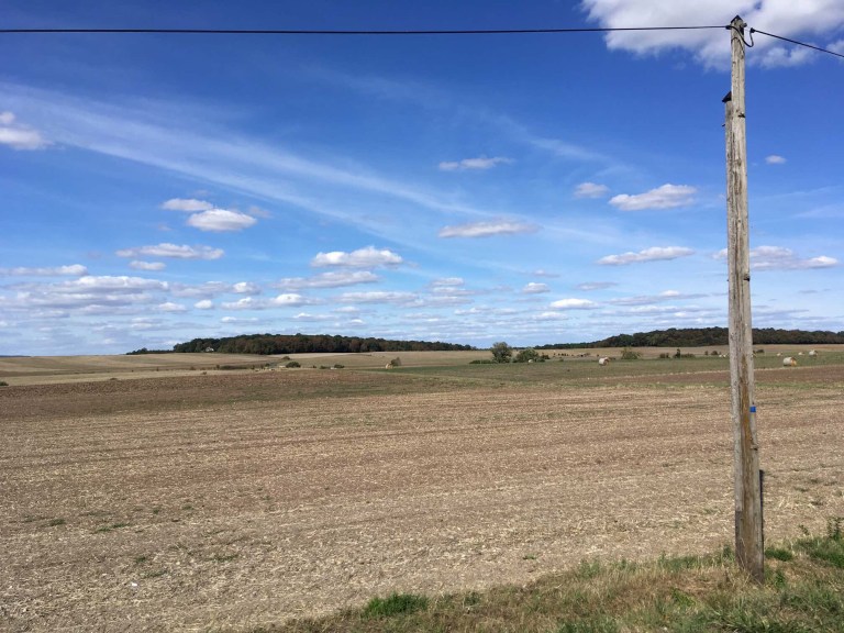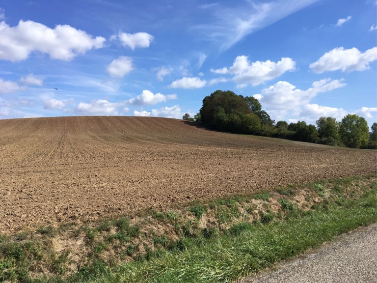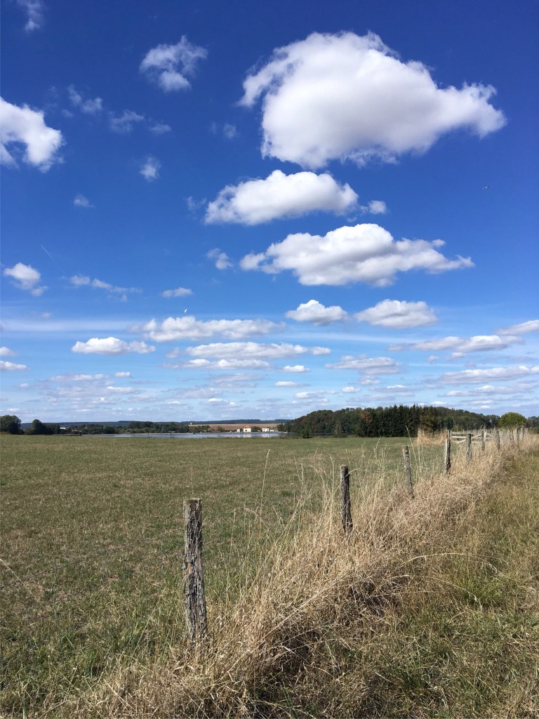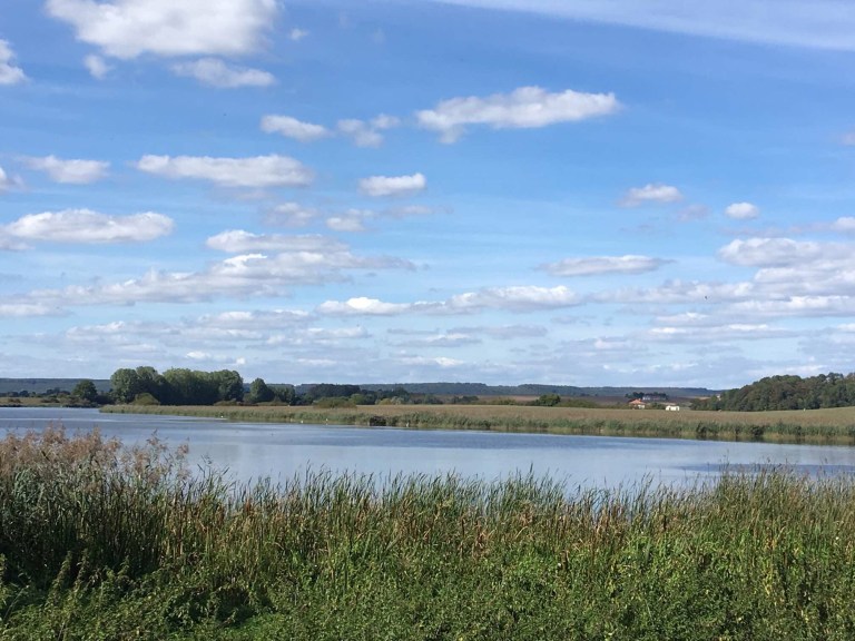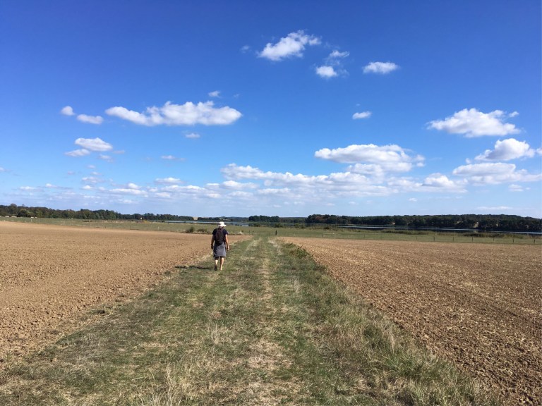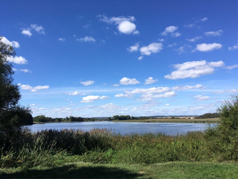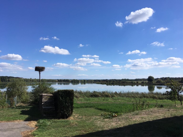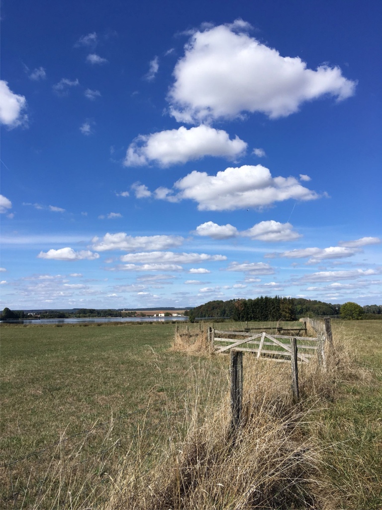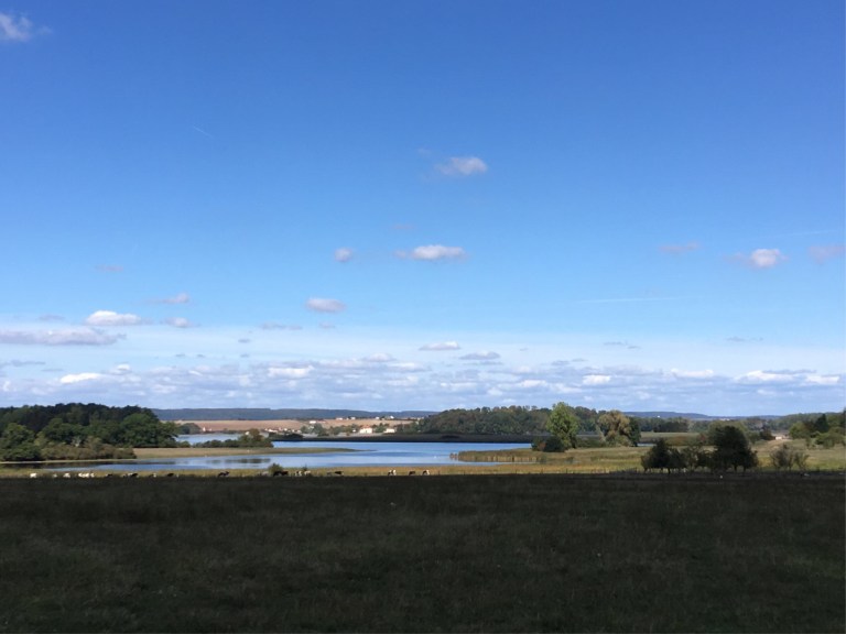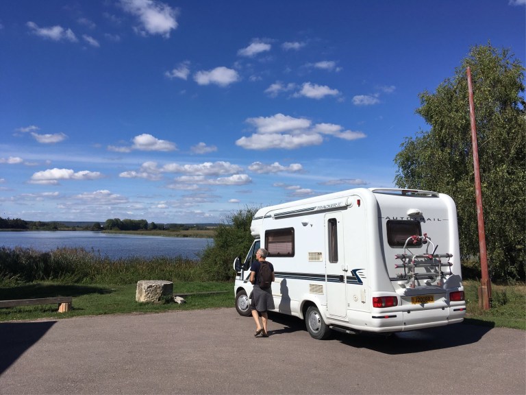 Our lunch stop was a lovely spot on a peninsula that stuck out into a large lake. Only room for a few cars, but we had the place to ourselves. This had actually been my fallback for the previous night, and would have been ideal. My trusty maps.me app showed a circular, Sophie-suitable route around some fields and then back through the village.