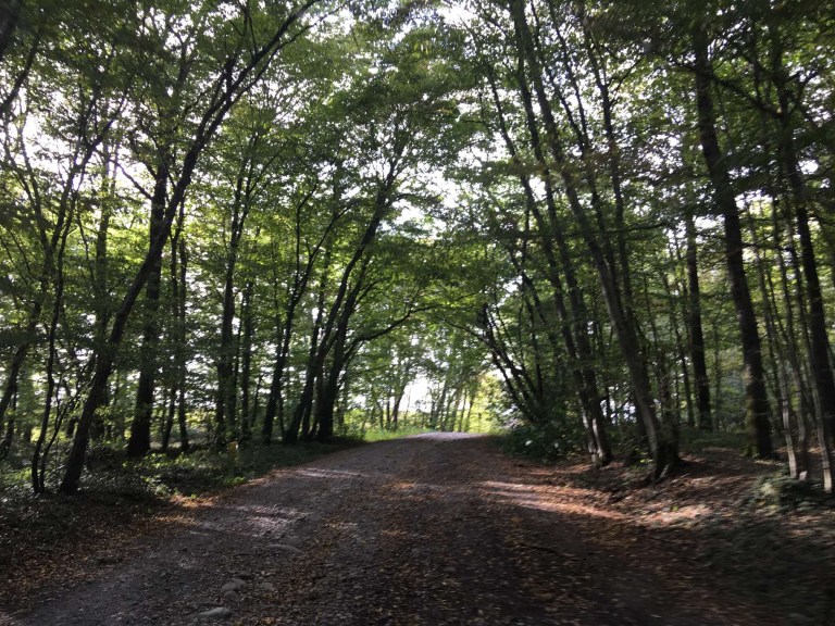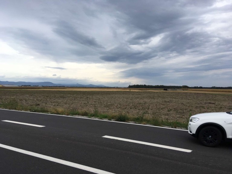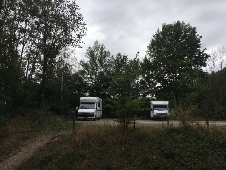 I just had a vague idea of direction and so we just drove through some mainly uninspiring industrial areas, until we reached some more pleasant countryside. The SatNav took us down a very dodgy forest track towards the end of the day, where the local walkers seemed surprised to see us. We even had to cross a train level crossing without a barrier, and so had to check before going over. As is often the case, that route was totally unnecessary, but we survived 😉.