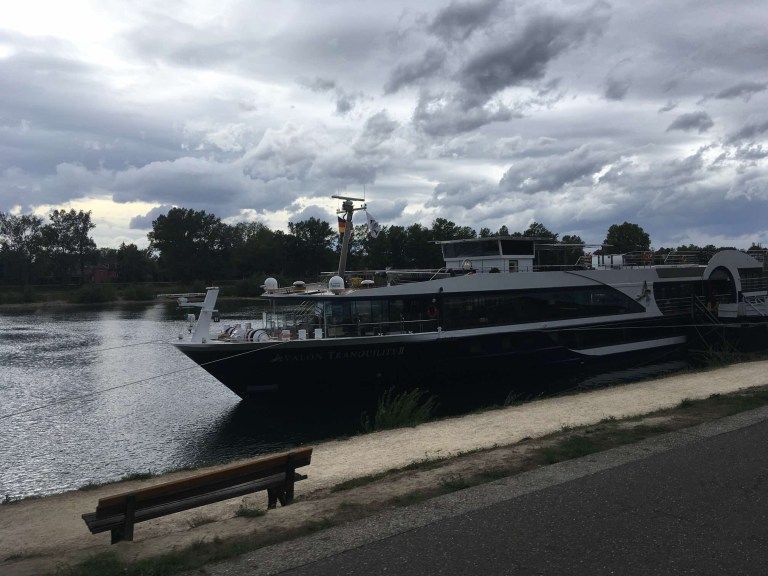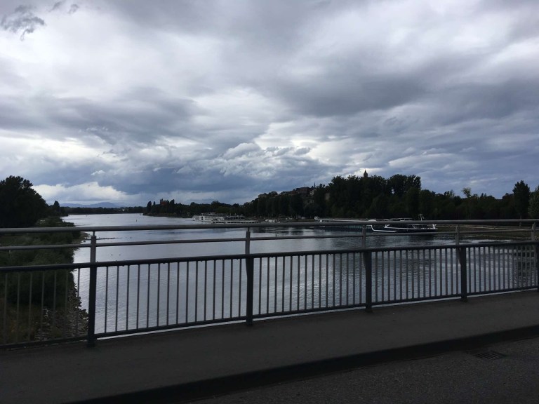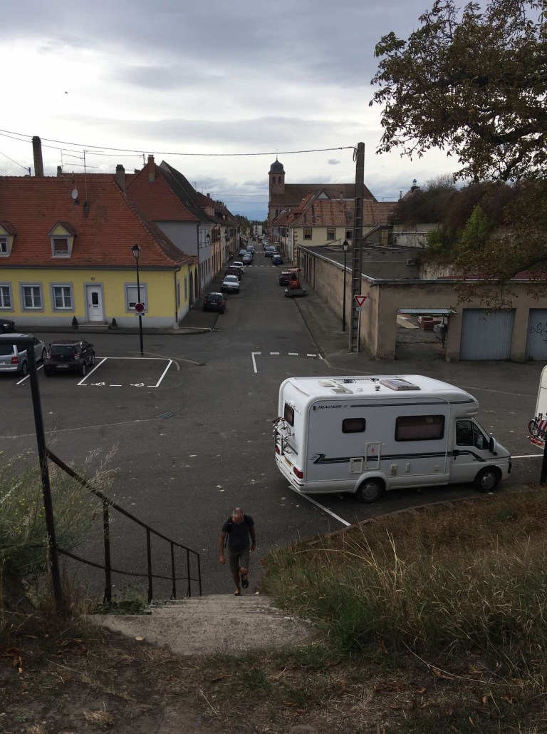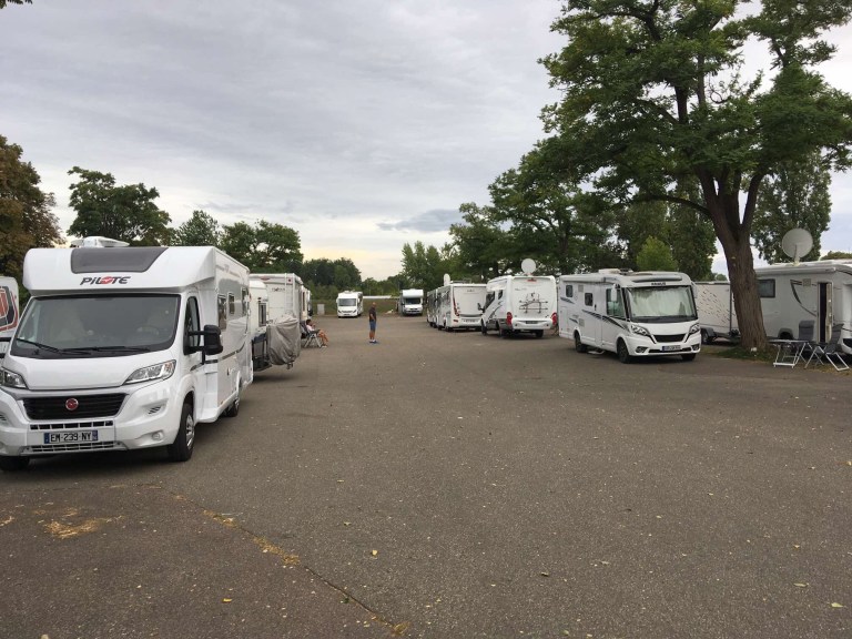 We then continued towards Germany, with my plan being to overnight on the French side of the Rhine. In an attempt by the SatNav to take us down an inaccessible road, we found ourselves back in Germany. Whilst there we actually followed a motorhome parking sign and ended up at Breisach am Rhein in a car park jam-packed with motorhomes. Not our idea of fun, so we were straight out of there. Breisach is clearly a place on the river where cruise boats pull in, so that was interesting.