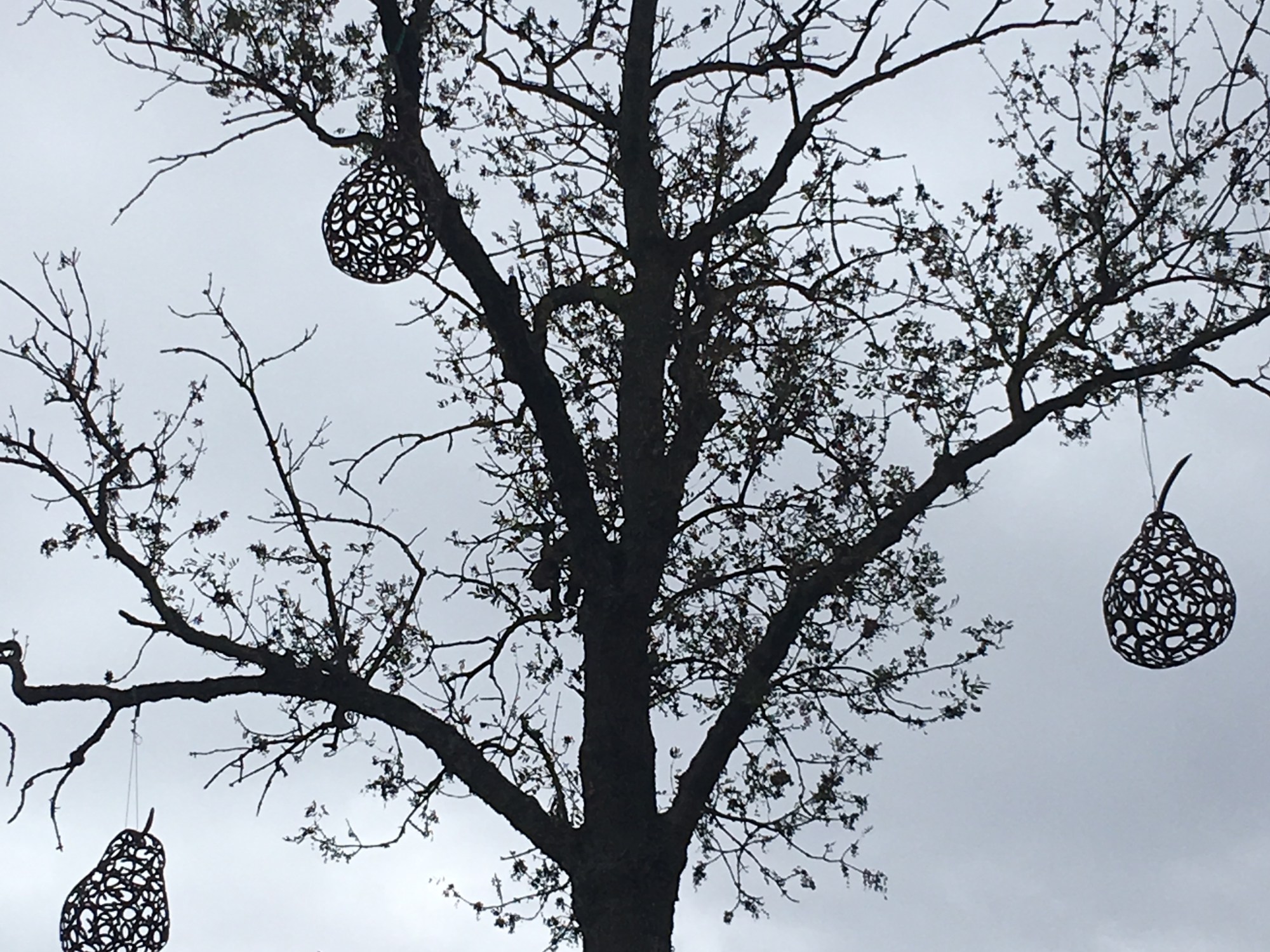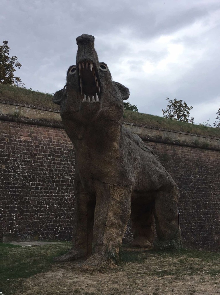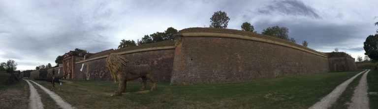 Easy parking was a good start, and as the town walls are the main attraction rather than the simple town within, we focused on these. There was an installation art exhibition taking place in the moat, so that provided added interest, plus we did a little walnut collecting 😉.