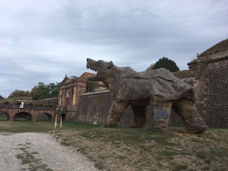 Being so close to Colmar, I also wanted to take in Neuf-Brisach, a fortified town right near the German border, and whose walls were designed by the famous French fortification builder, Vauban. The key feature of the town is its symmetrical star shaped outer wall, with a precise criss-cross road pattern within the walls.
