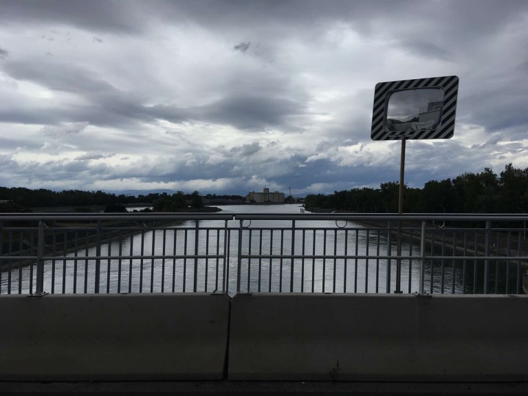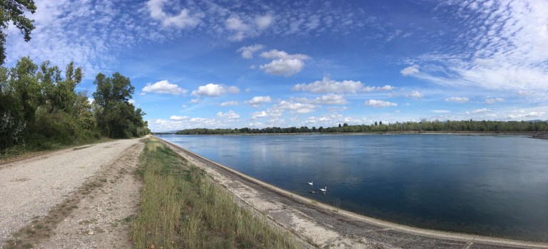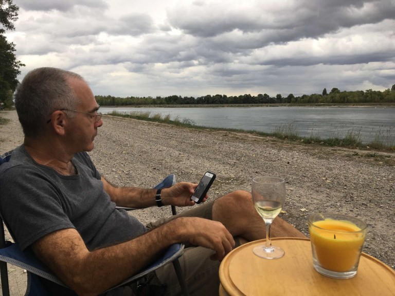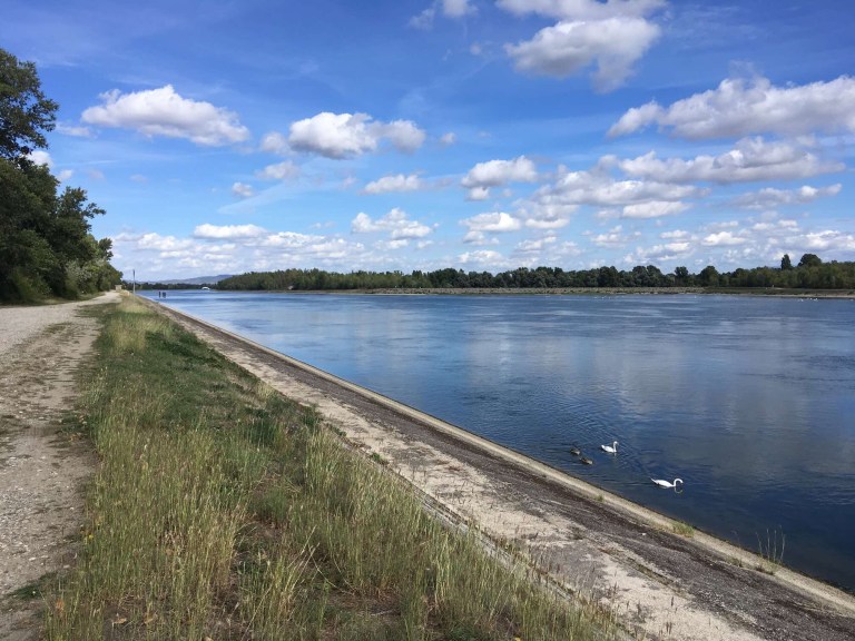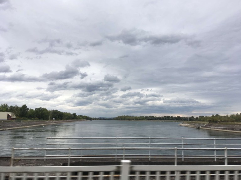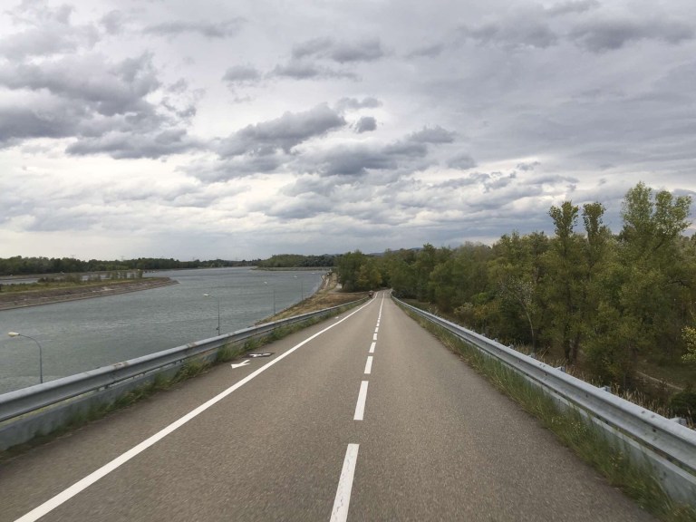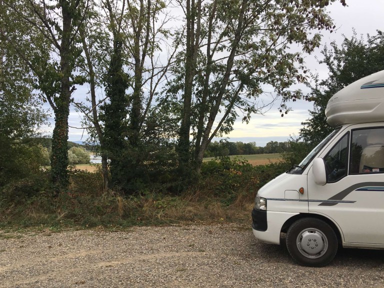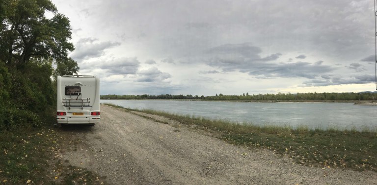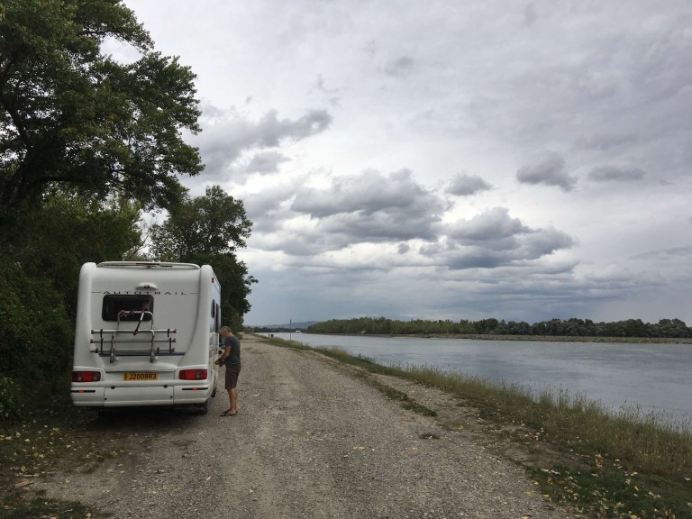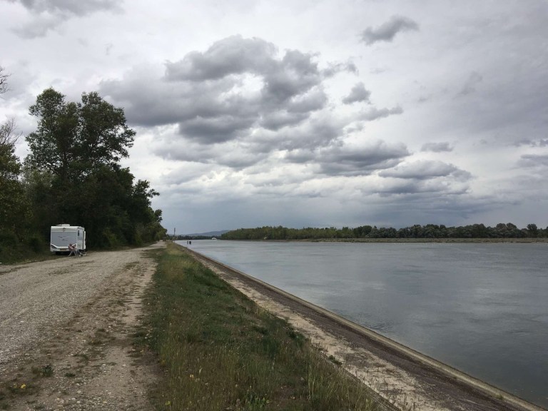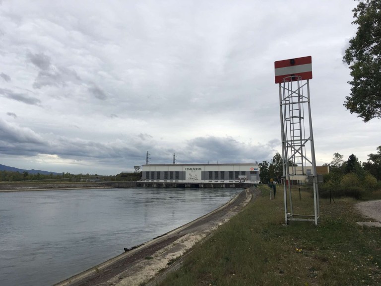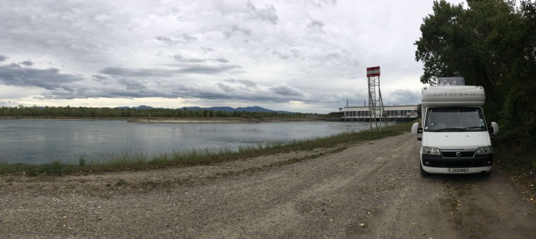 Back in France, and after a word with the SatNav, we arrived at the hydroelectric dam at Fessenheim. After sussing out both sides of the large canal there, we plumped for the West bank, using the Park4night there, but taking the liberty of driving further along the canal bank, where we saw another motorhome had set up, and away from the hydroelectric interpretation centre.