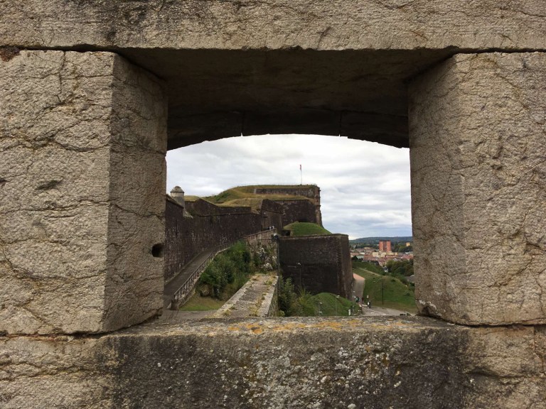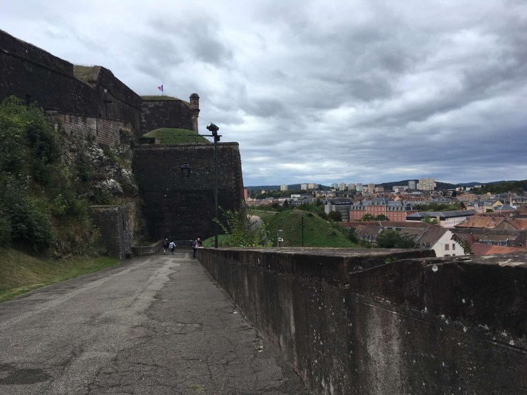 For purely practical reasons, I headed into Belfort anyway just to get some free water from their motorhome aire. Sophie unexpectedly did some research and suggested we visit the citadel there. There was convenient parking (closer than the aire), and no problem for our very modest 6m length. We enjoyed a good walk around the battlements, and also checked out Belfort’s famous and enormous stone lion up there, that looks out over the city. We passed on the opportunity to pay €1 each to go on the special terrace to see the lion from a different angle 😉.