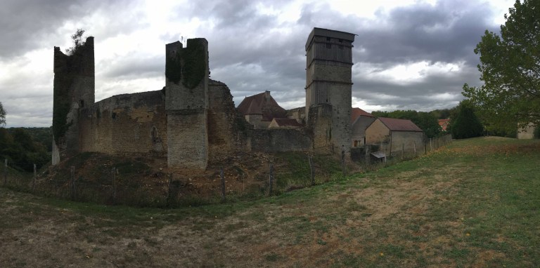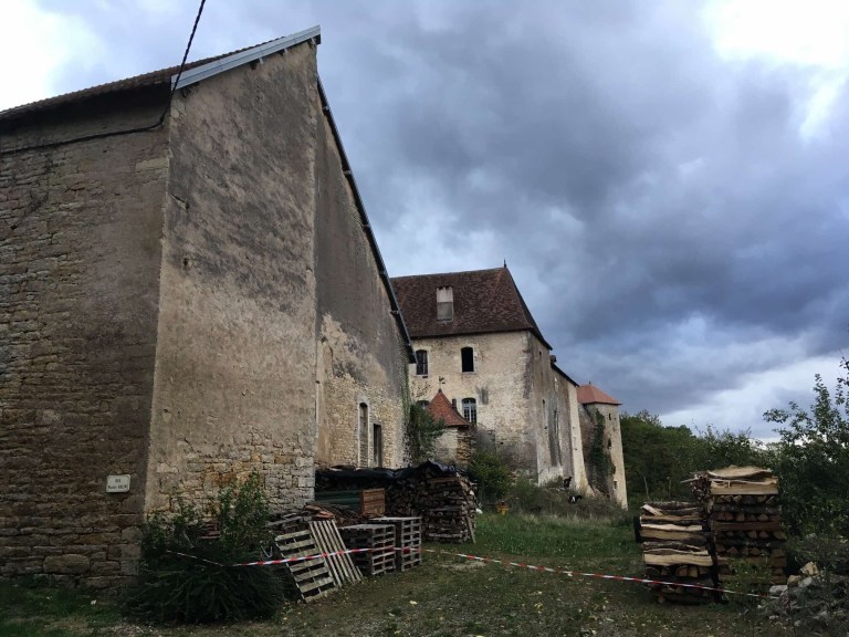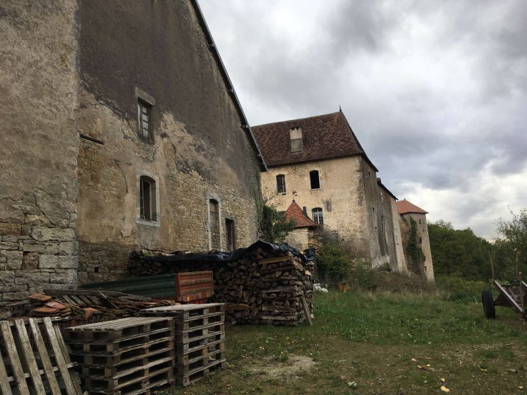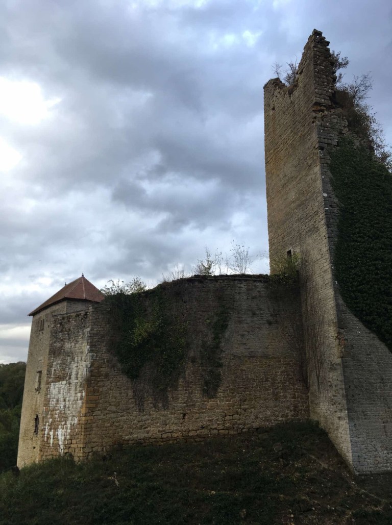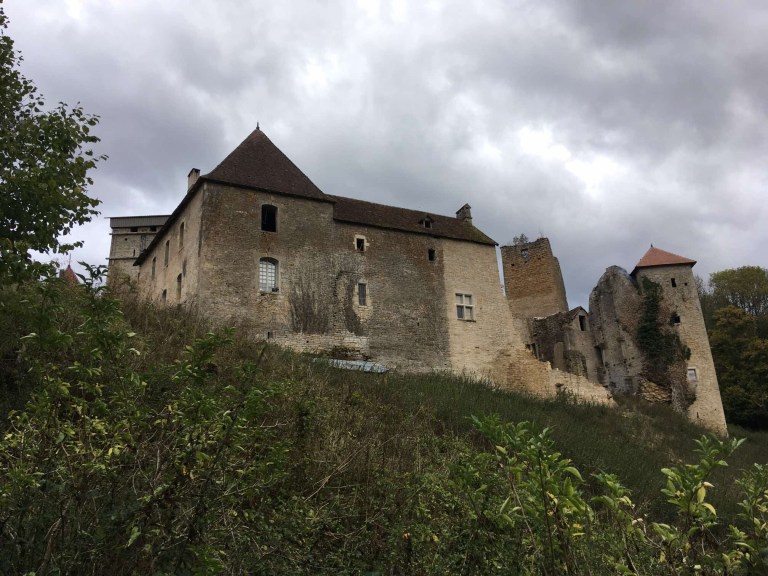From this point on we really began to notice how very attractive the Franche-Comté scenery was. Before long, one of those annoying “Chateau” signs appeared and once Sophie saw that we were obliged to race around the countryside in search of some ruined buildings. As it turned out, it was a great drive in a very pleasant setting of gentle rolling fields, trees and cows, all set off by that magical light one hour before sunset. The private chateau, too, didn’t disappoint and whilst Sophie circumnavigated it with her phone so as not to miss out on any possible angle, I did the practical thing of finding somewhere to stay.