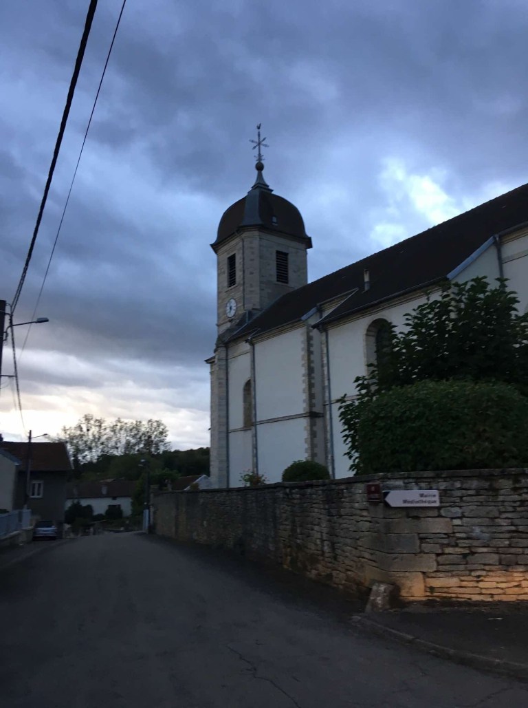 Next stop was the famed Le Corbusier’s Chapelle Notre Dame du Haut at Ronchamp, a sort of futuristic looking church on a hill. We took photos of as much as we could see without paying to actually go in. You may well be seeing a trend in how we generally treat entry fees 😉.