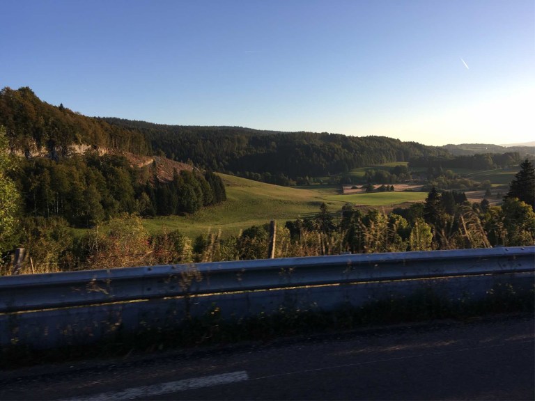The drive that evening, heading Southwest in the Jura region, was stunning, with more of those perfect undulating hills, with the forests beyond, all bathed in the beautiful evening sun.