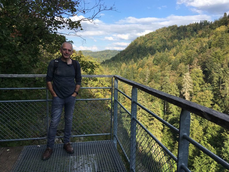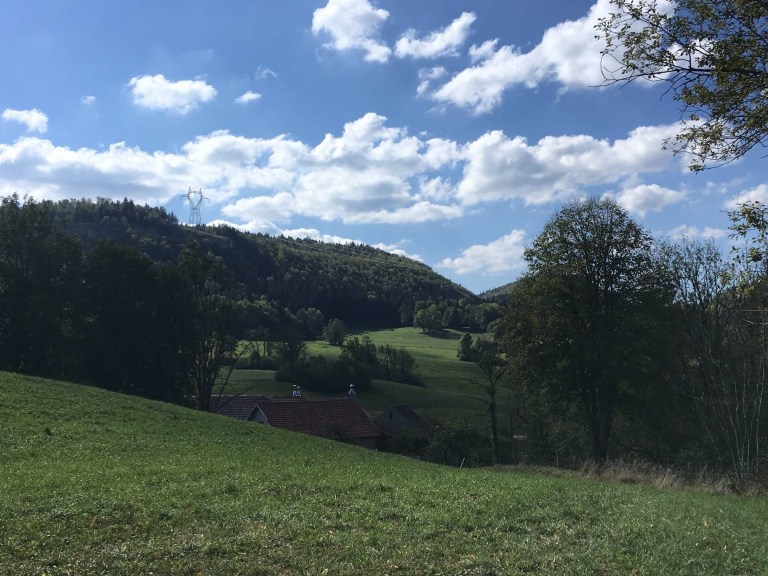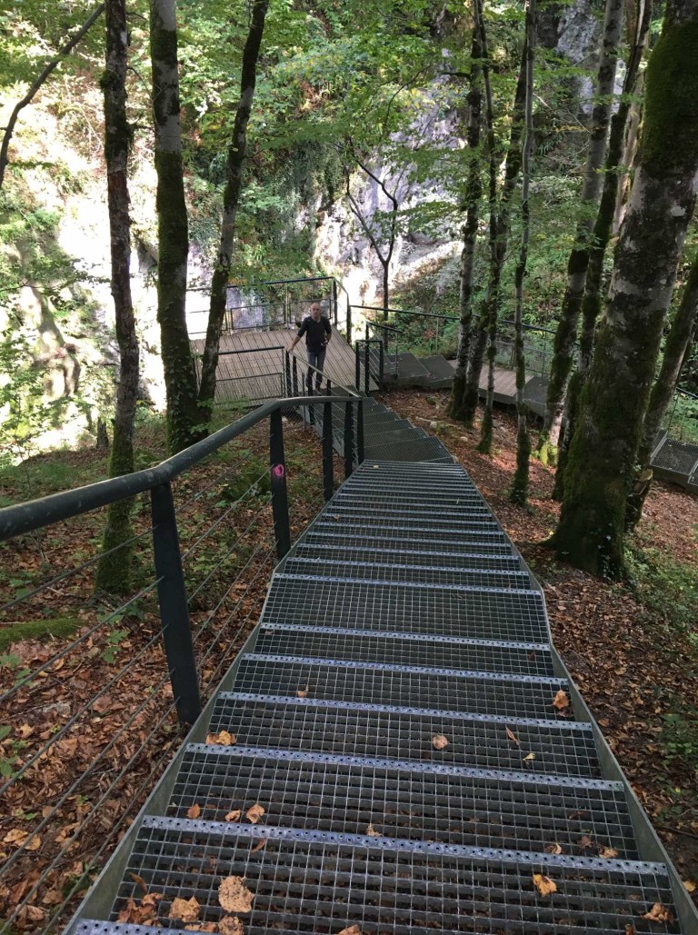 Venturing further into the “Parc Naturel du Haut-Jura”, we next wanted to visit the famed “Cascades du Hérisson”. After a little research, we could see that it would cost us €5 to park to see this natural feature, which we objected to, but not wanting to “cut off our nose to spite our face”, I suggested we go and see it from another vantage point, and then take a view. As it turned out, there didn’t appear to be much water, and so decided there wasn’t much of a spectacle to be worth the detour.