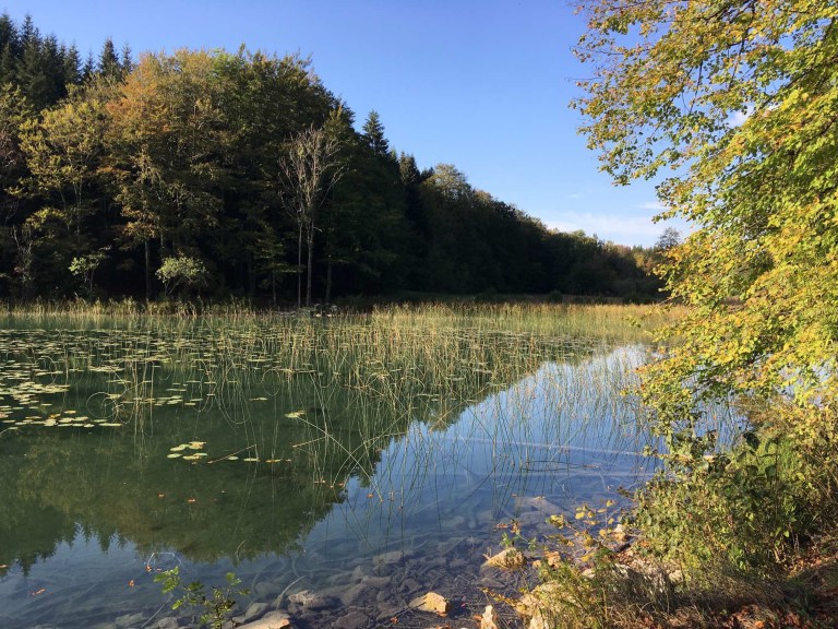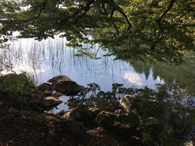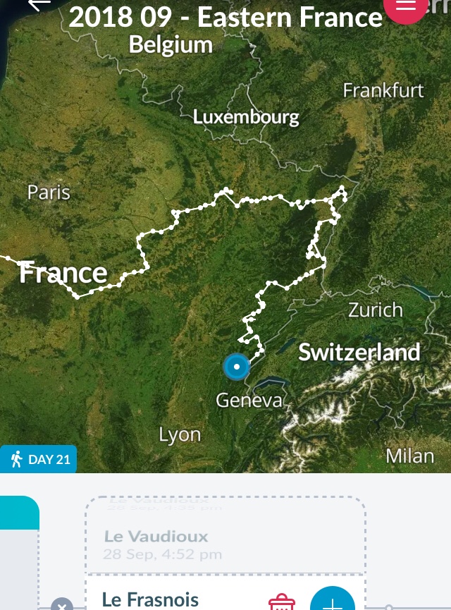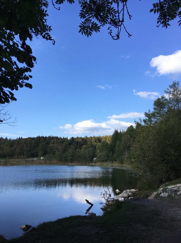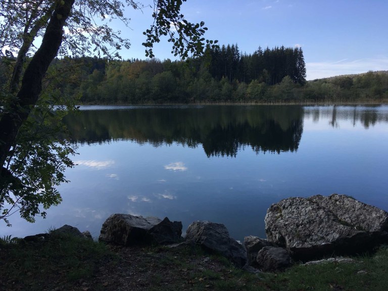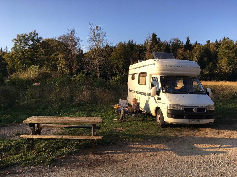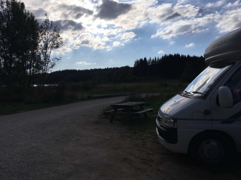 Later on, and for possibly the second or third time this trip, Sophie unexpectedly pointed out a likely Park4night spot right next a lovely lake, and the SatNav confirmed her suspicion. So, after the usual “dance” of finding the perfect vantage point, for one of us at least 😉, we enjoyed a walk along one side of Le Petit Maclu lake, and then settled for the rest of the day and night, with just one neighbour for company.
