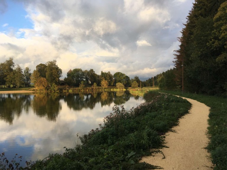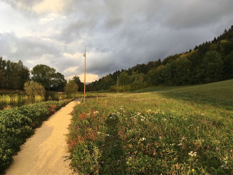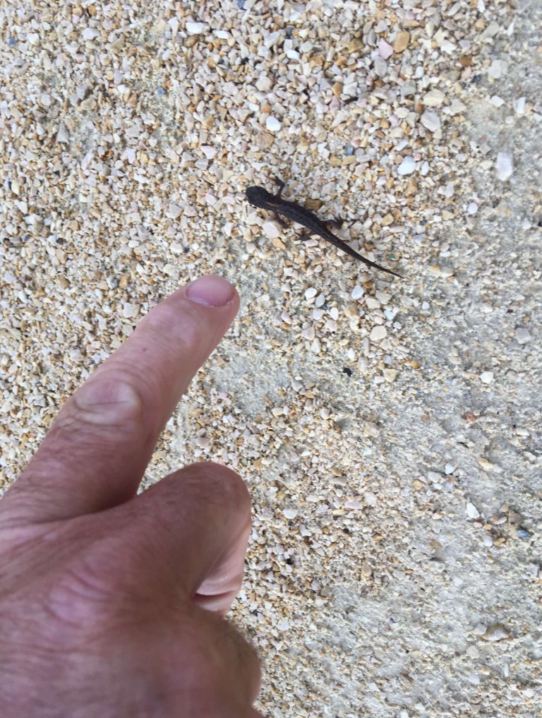 Taking advantage of the lovely evening sun again, despite the ominous dark clouds, we took a very pleasant stroll round the small lake. Strangely, we soon started seeing lots of tiny lizard like creatures along the path. They appeared to be frozen as they were so still, but they were definitely alive, and clearly using their built-in defence mechanisms, which didn’t factor in that sometimes it would be much better to scarper rather than risk being trodden under foot.