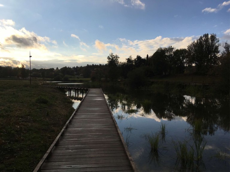 So we finally came to the stop at Lalleyriat. This was an out of town tarmac, roadside carpark serving a lake and it all seemed very new. Although a key arterial route for the local towns, traffic was minimal. The carpark even boasted some form of fancy composting toilet.