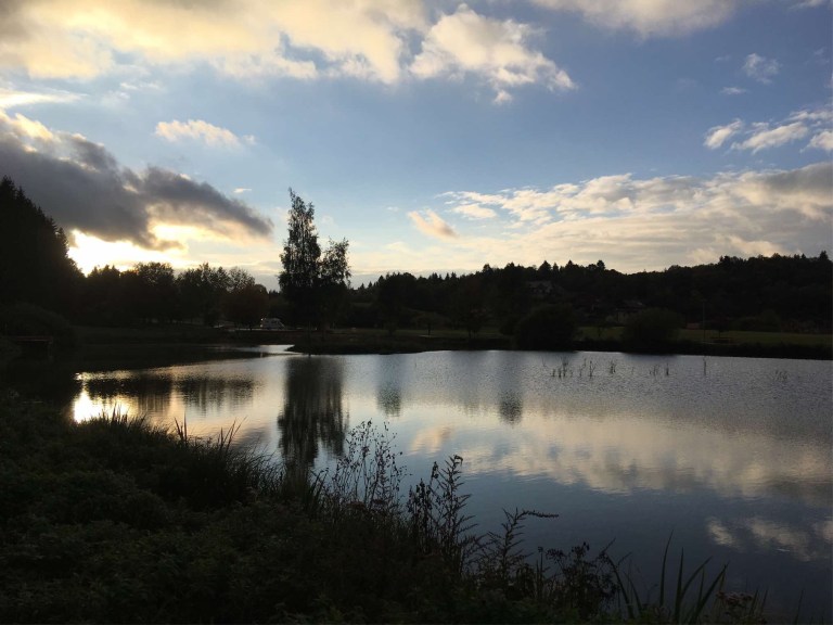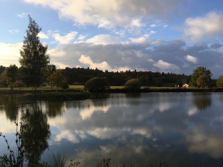 Next day we headed back down the same hill we’d approached Grand-Corent on the previous evening, with its great views of the vast plain below, and then along the lovely lake we’d stopped for photographs the day before.