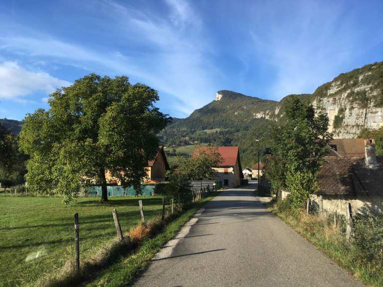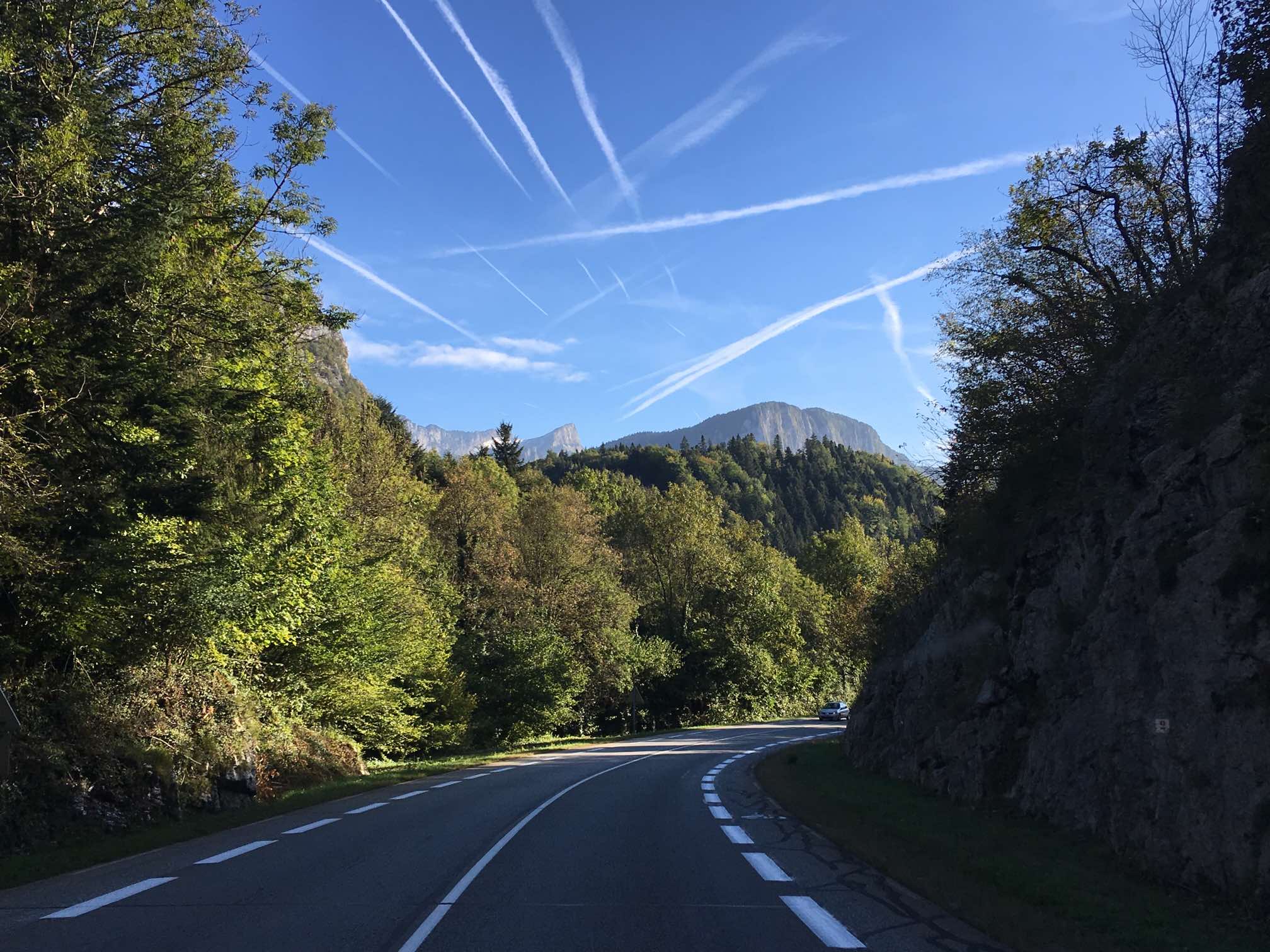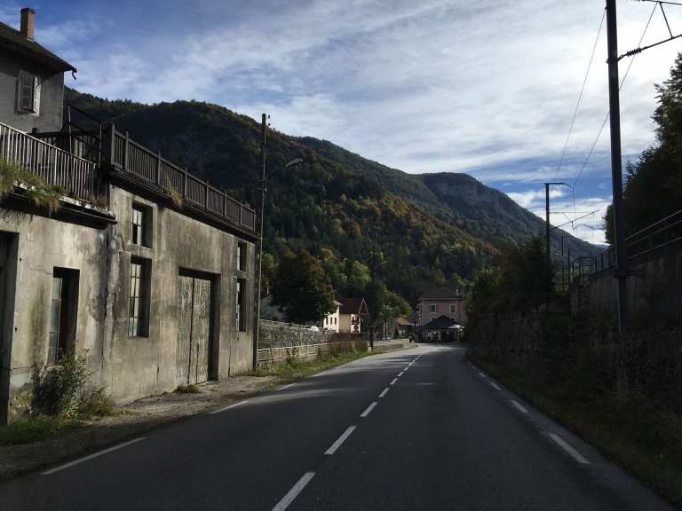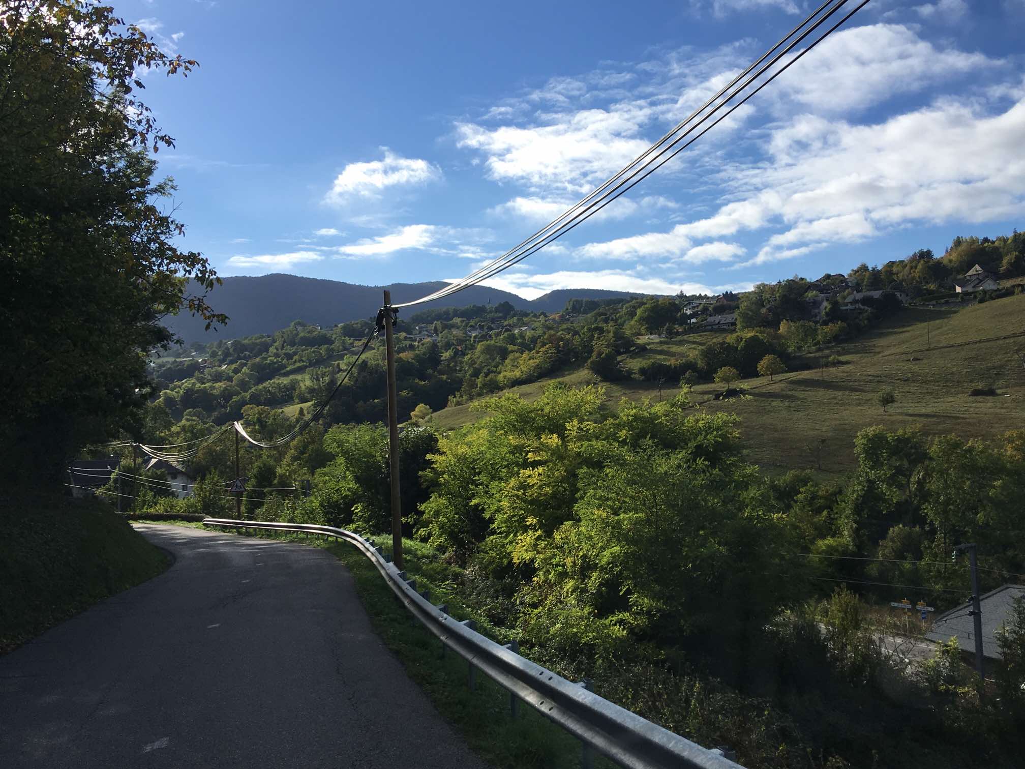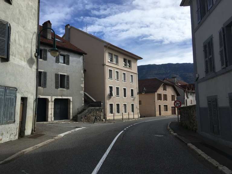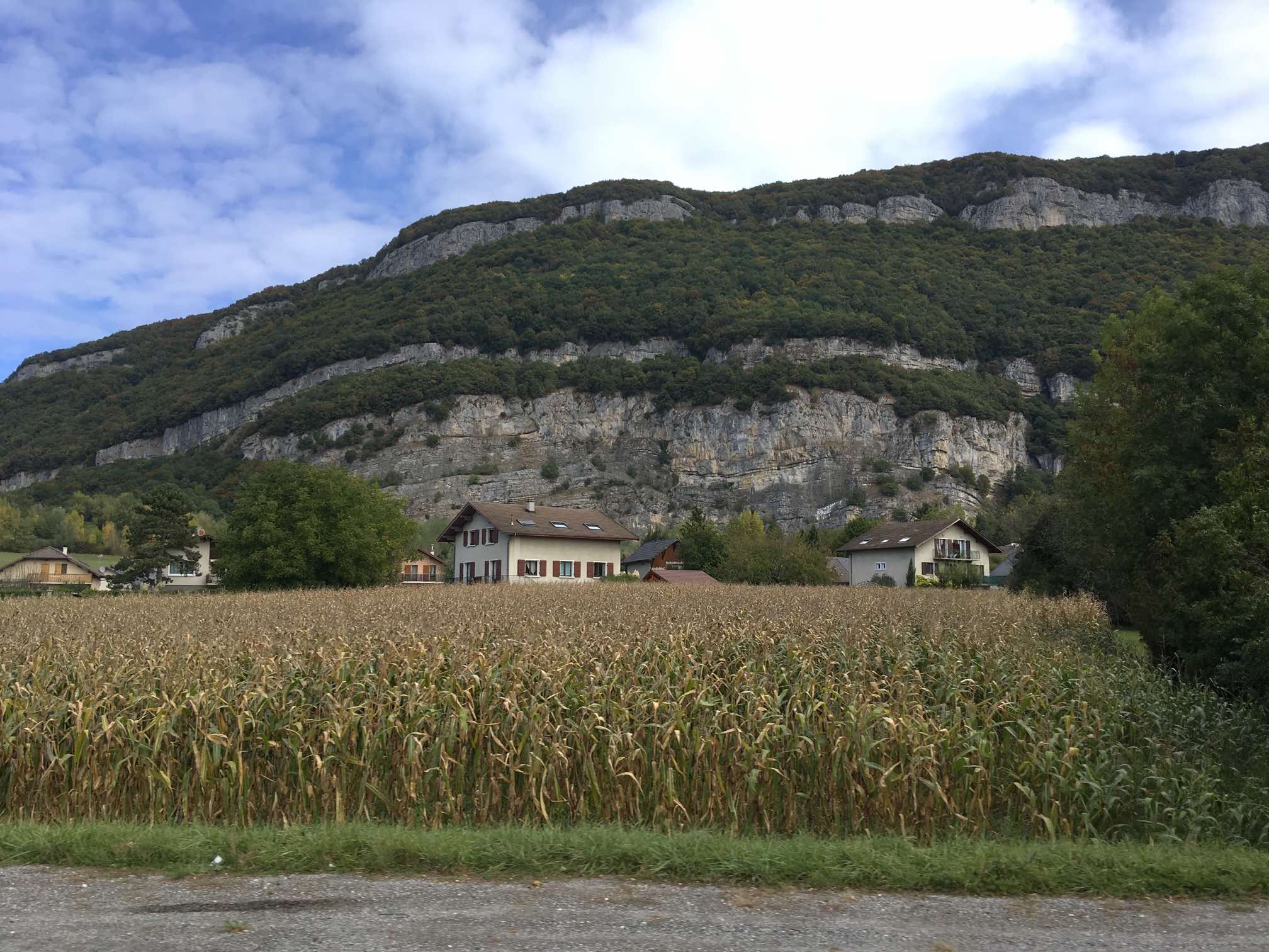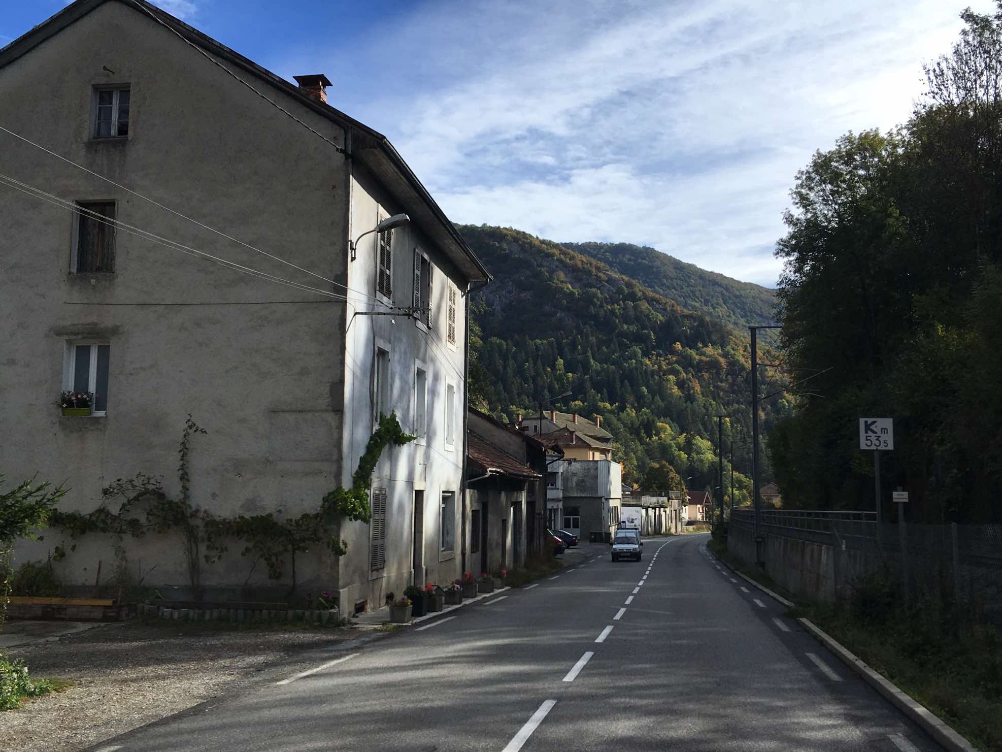 After a narrow escape from Chambery, we headed in a Southwesterly direction, and the great mountain views continued. We checked out a couple of potential overnight stops, but very narrow roads, as well as Sophie’s new criterion of not being too close to church bells, led us to carry on to the small village of Les Echelles.