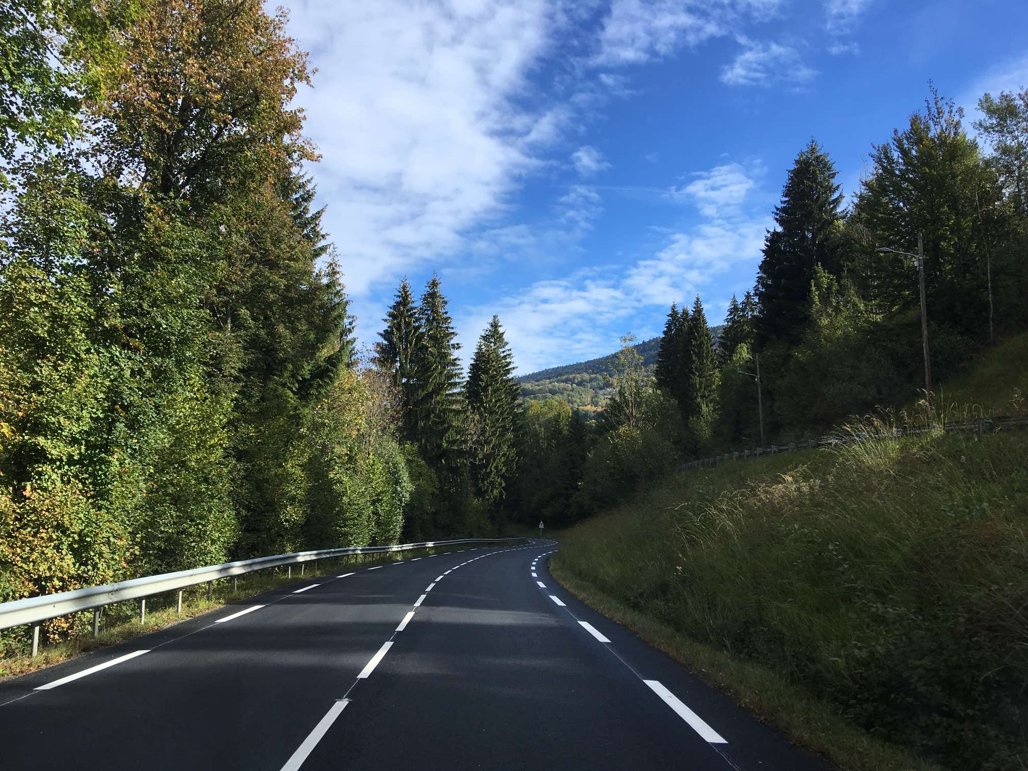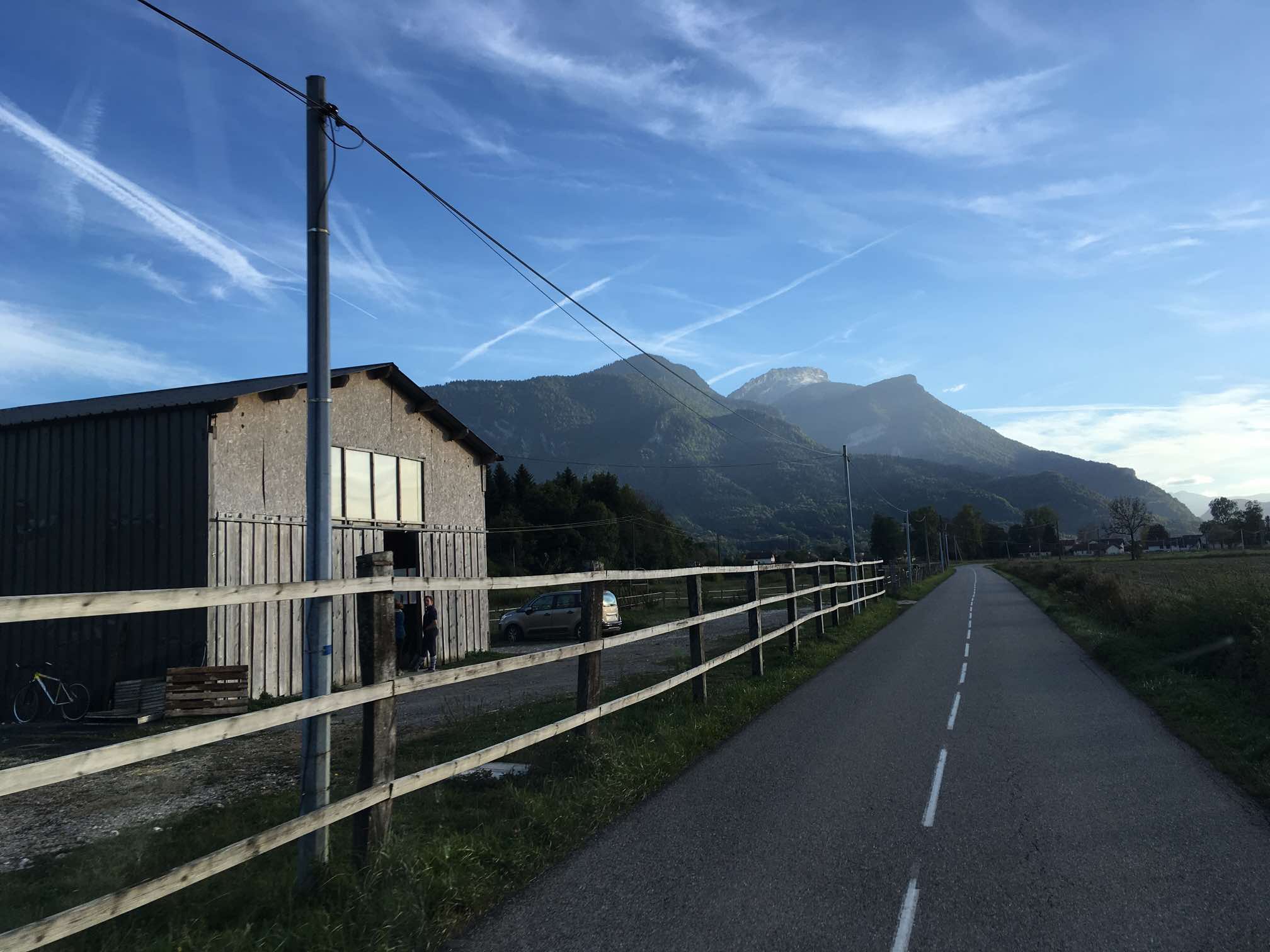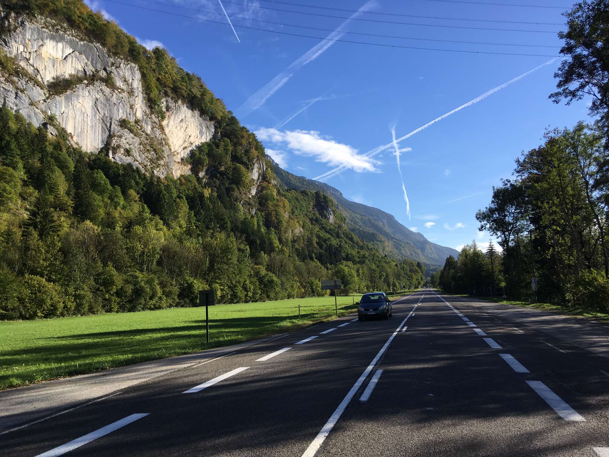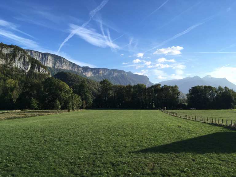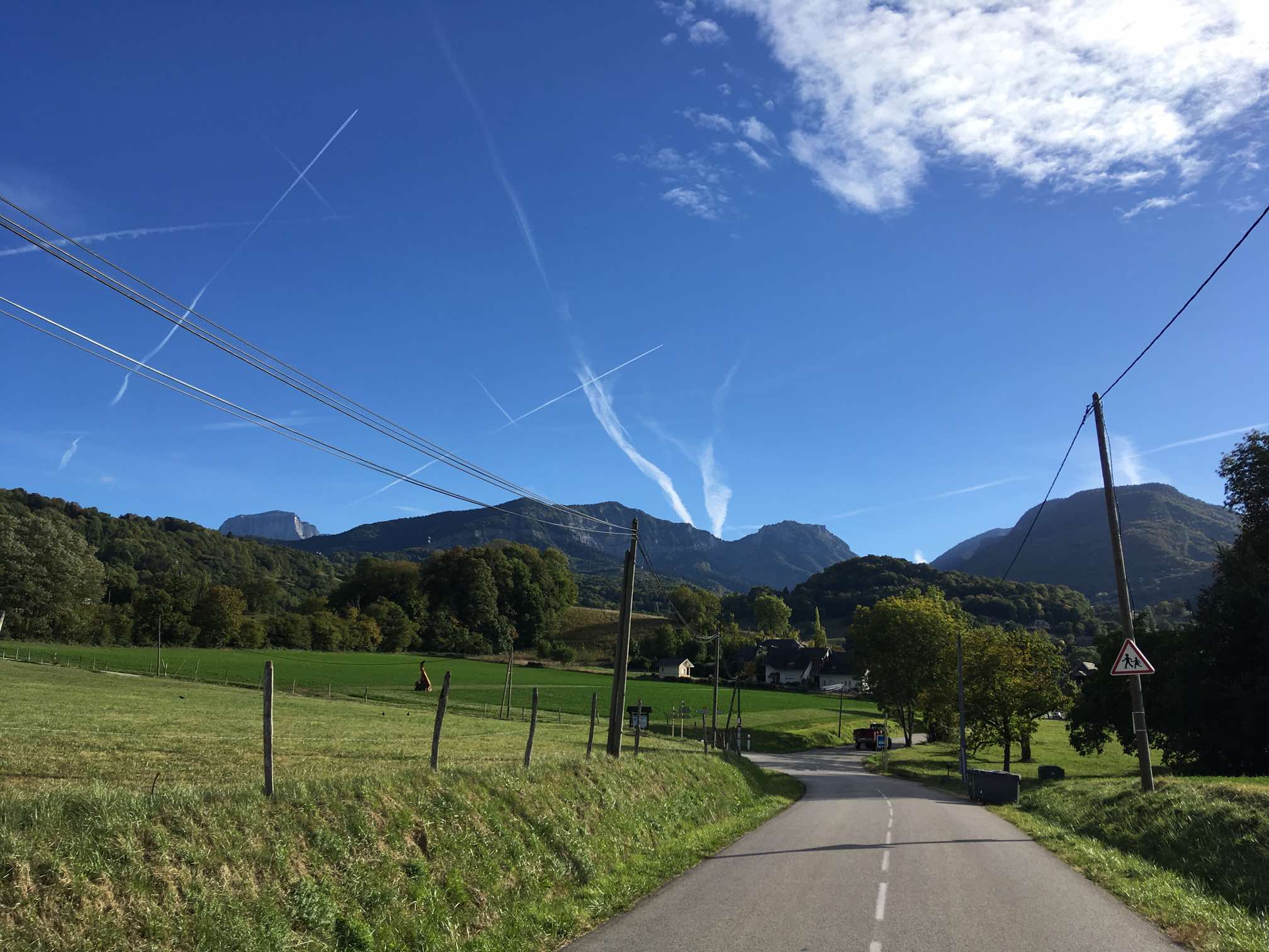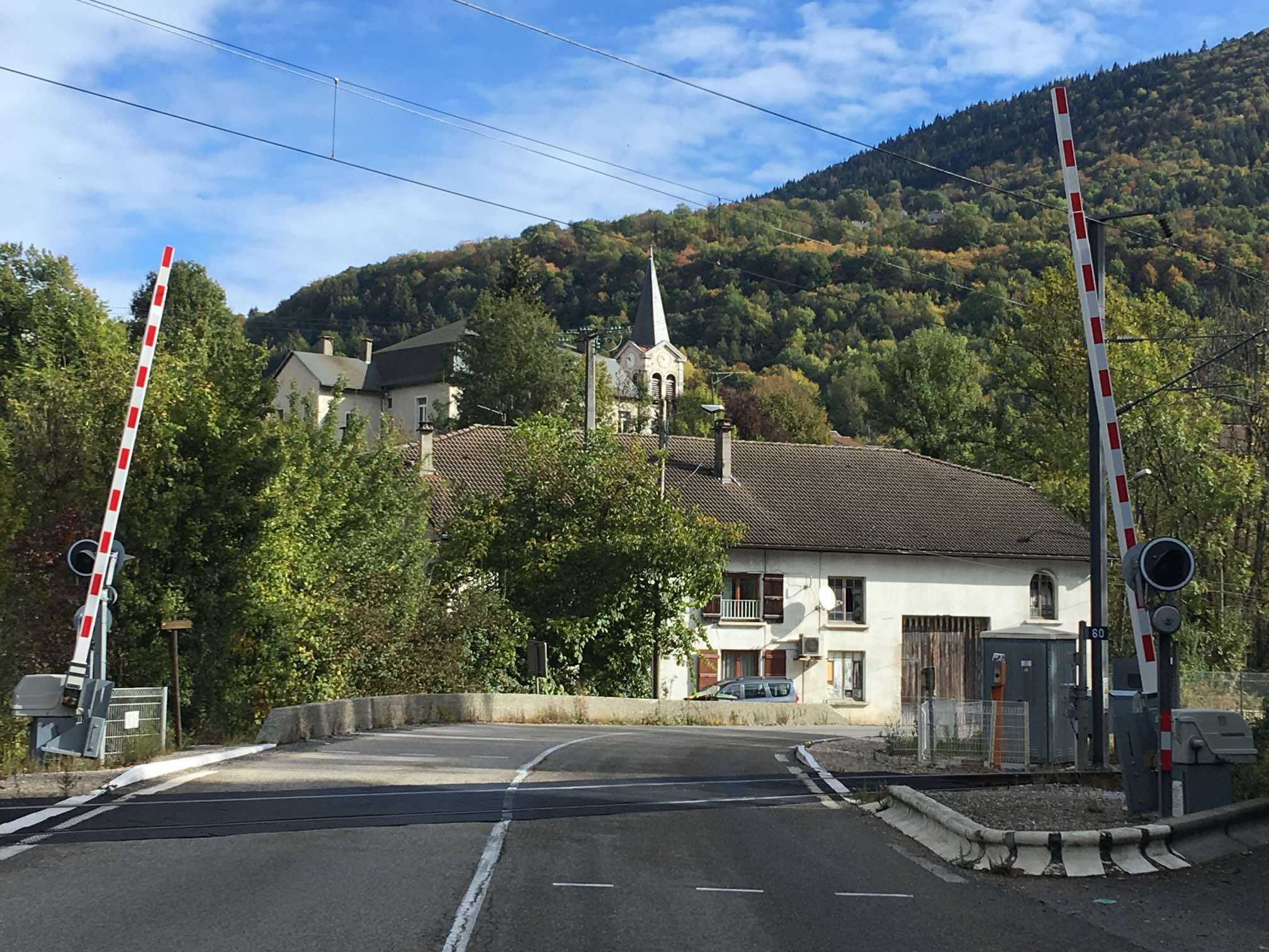 After a narrow escape from Chambery, we headed in a Southwesterly direction, and the great mountain views continued. We checked out a couple of potential overnight stops, but very narrow roads, as well as Sophie’s new criterion of not being too close to church bells, led us to carry on to the small village of Les Echelles.