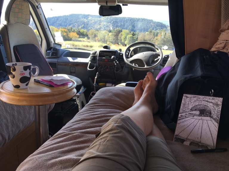 Anyway, we soon found our way and joined Jacqui in the rural carpark on the edge of the hilltop town. It had a lovely open aspect, and was a great find.