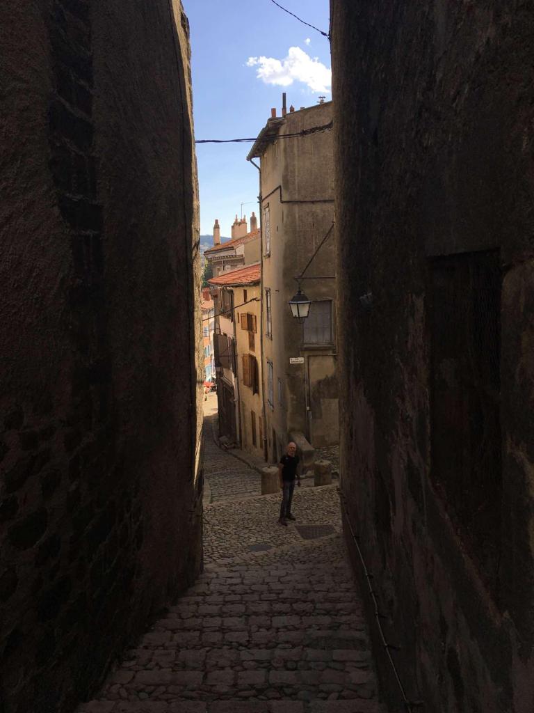 We then were off ourselves, aiming for nearby Le Puy en Velay. Down as a must-see town in the guide book, we did our usual drive past, and I thought I’d got away with it, but Sophie was keen to see it on foot. There is dedicated motorhome parking, just a short, but somewhat steep, up and down, wander into the centre. It has some lovely old parts and we’d recommend a visit.