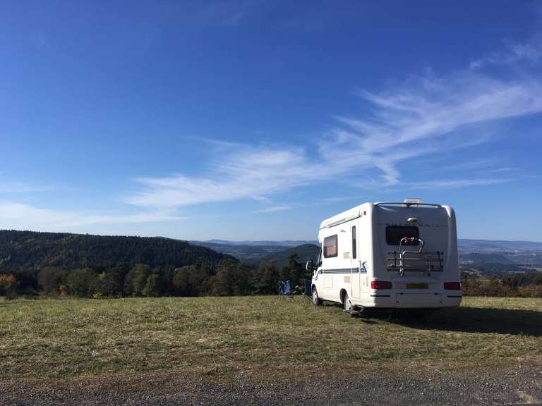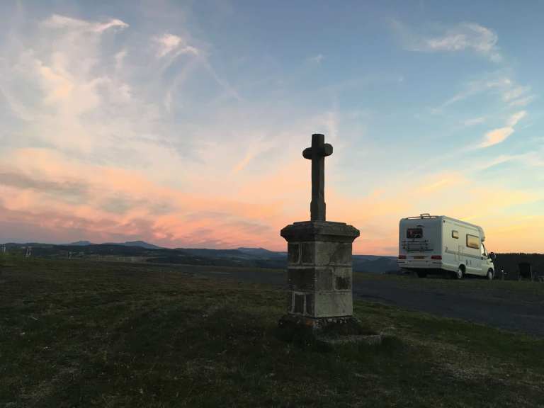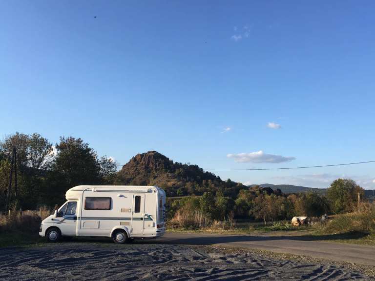 I’d told Jacqui back at our overnight spot that we were aiming for a Park4night in the nearby small village of Polignac. She got there ahead of us, but being new to Park4night she’d assumed the SatNav would take her a sensible route, so she had an interesting journey, and definitively burnt some rubber on a steep section. I had already looked at the route proposed by our SatNav and realised by the extreme winding and wiggling that this could be uncomfortable, and fortunately we had a word with the SatNav and went a slightly longer route round.