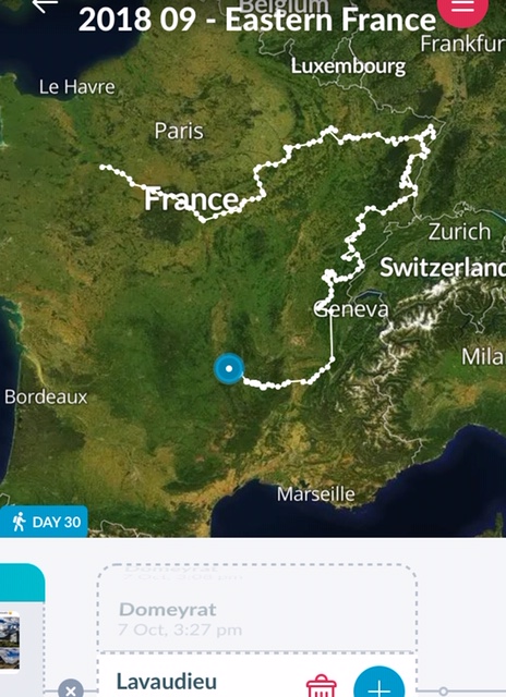 Meanwhile, Jacqui had “radioed through”, via Messenger, that she’d found a great stop at Lavaudieu and was going to overnight there. As it was on our route anyway, we were grateful for the recommendation and so off we went.