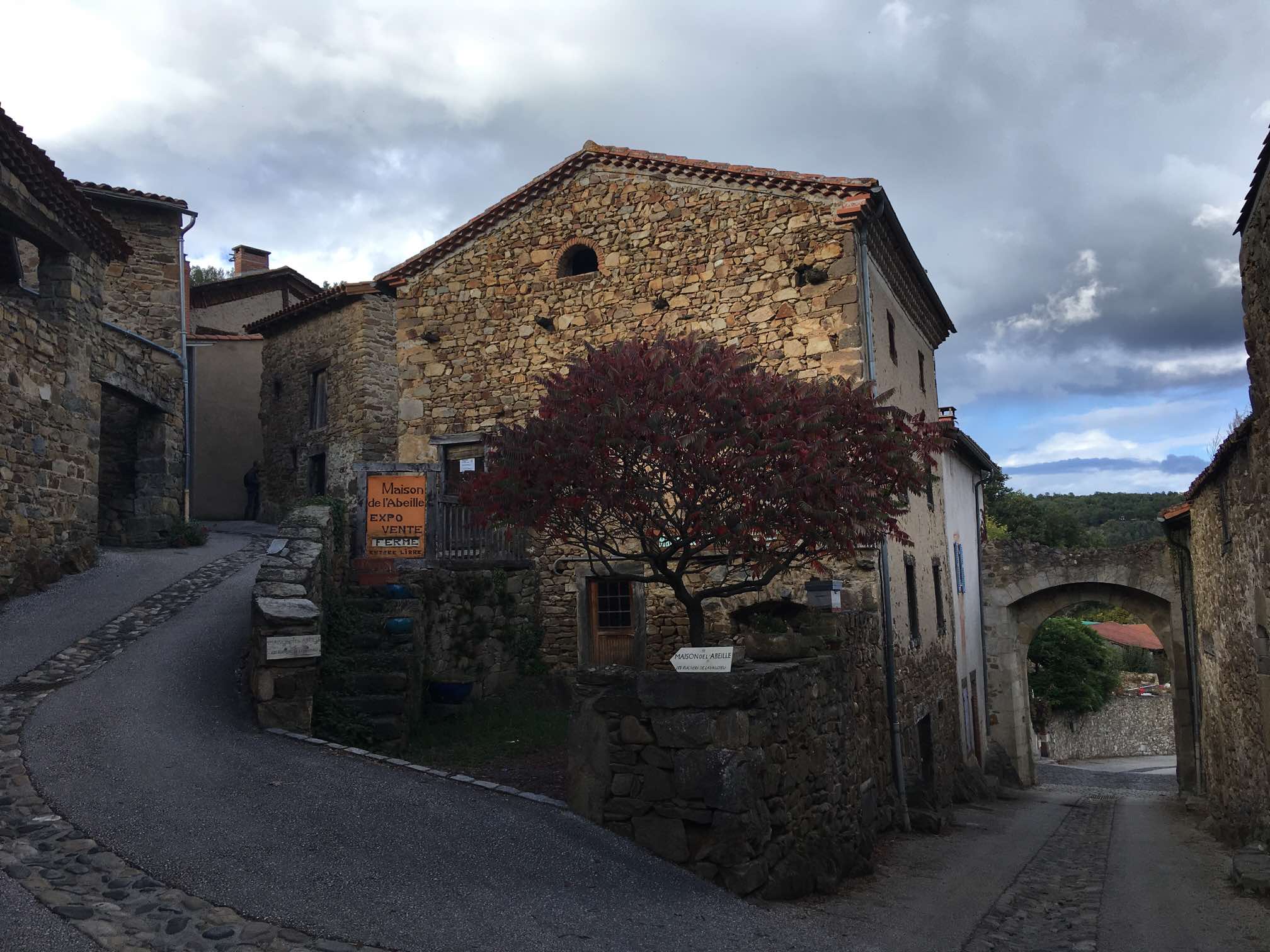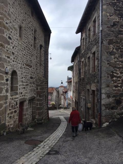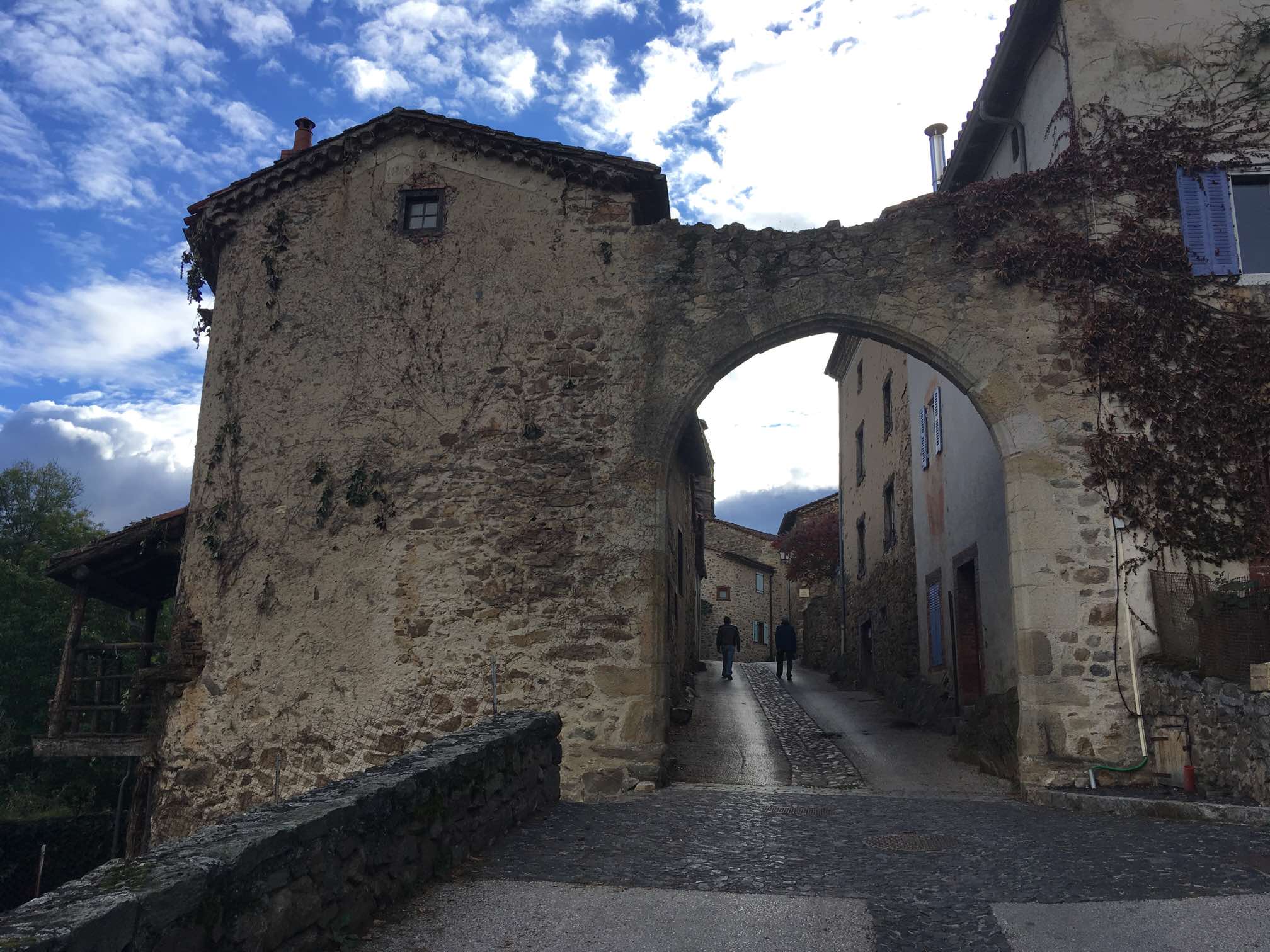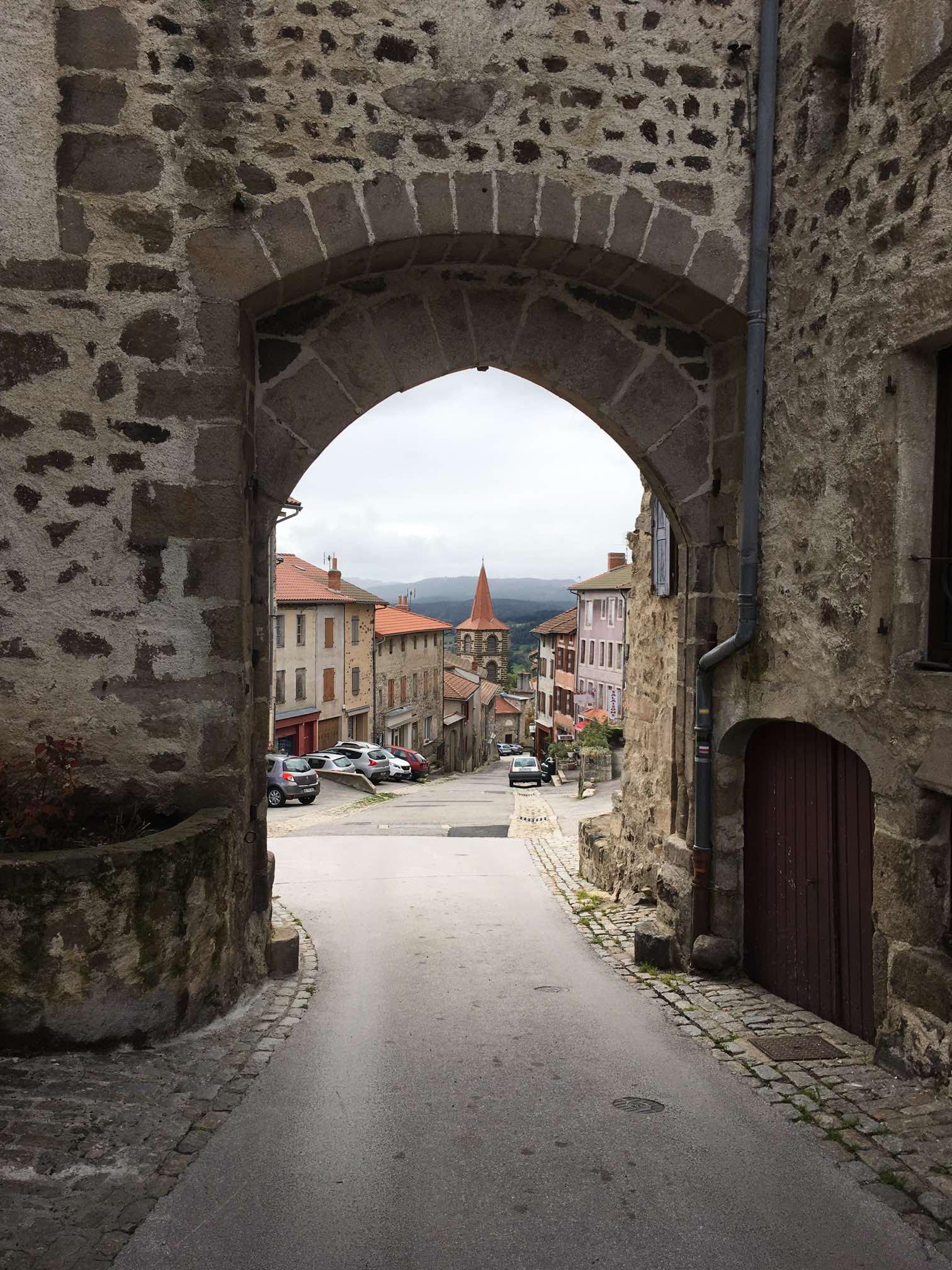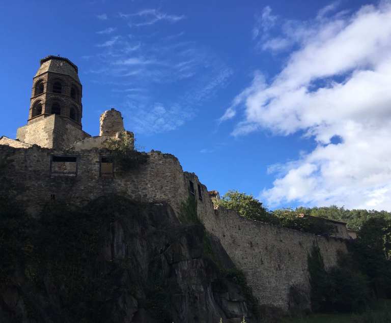 We were soon at Allègre, another lovely hilltop village, with some castle ruins to visit. After tentatively navigating our way up into the town, we found parking in the small central square. Like many villages we’ve visited in France, Spain, and Portugal, there was not a soul in sight and, as always, we agreed that it felt like some post-apocalyptic world where we were the only survivors. This is particularly noticeable between 12 and 2 in France, and, as this was a Sunday, it was even more likely.